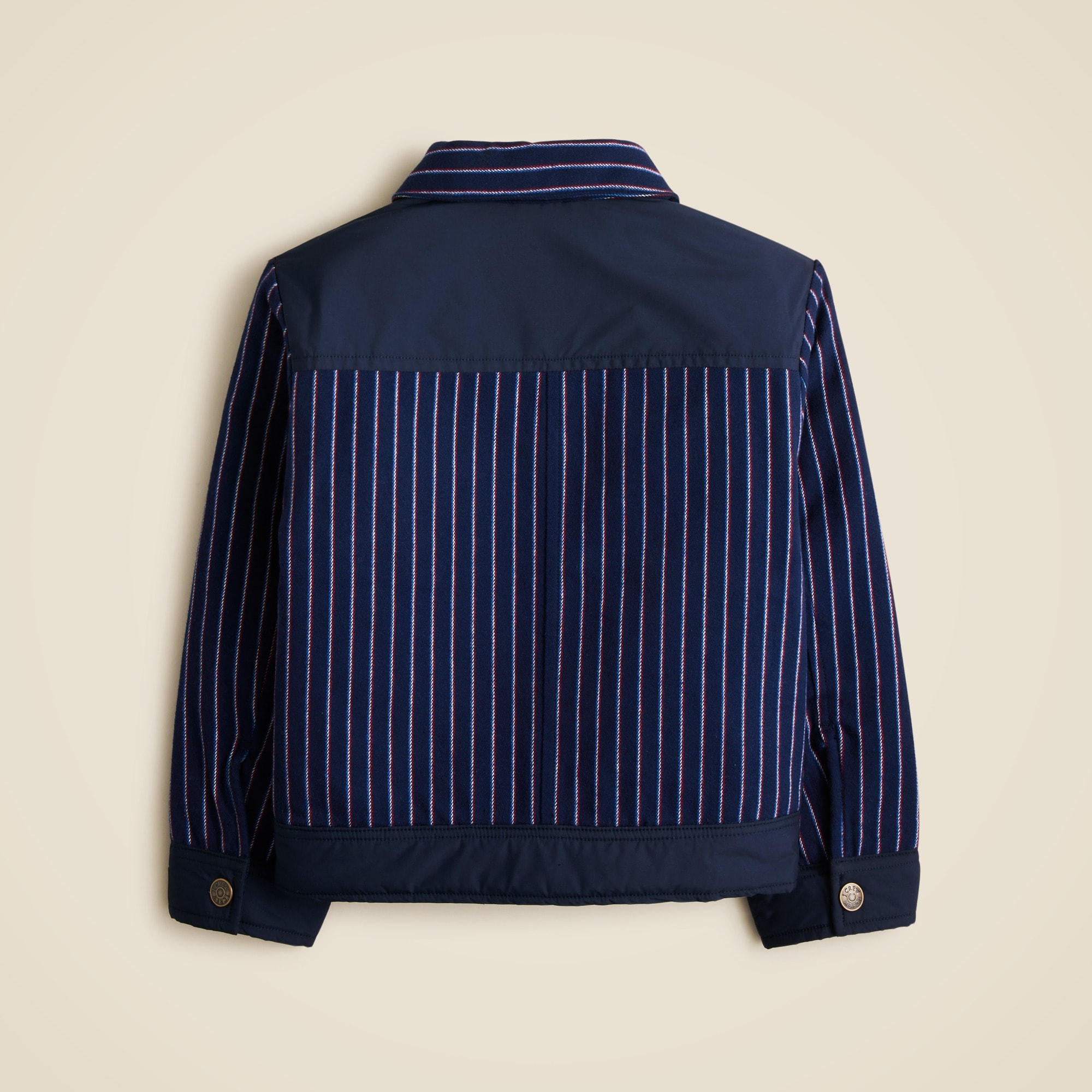 This jacket is a design-team favorite for many reasons. . . With a pinstripe pattern in our lightweight (yet super-fuzzy) faux-wool fabric, it’s the coolest statement layer he can wear from season to season.