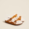 The German-based Birkenstock family has been making footwear for over 230 years, so they’re pretty much pros at this point. This style is a fall-ready version of their classic, durable and crazy-comfy Arizona style, with fuzzy shearling lining that’ll keep little feet warm and cozy.