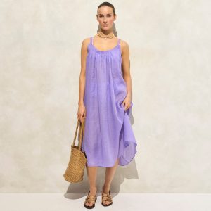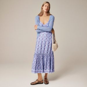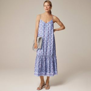 Tiered Tie-waist Dress In Dusty Periwinkle Block Print For Women
