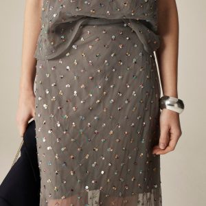 Collection Gwen Knee-length Layered Slip Skirt In Embellished Daisy Chiffon For Women