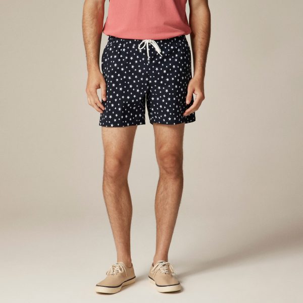 We’ve updated the classic swim trunk with a modern fit while keeping its old-school drawstring waist and adding a mesh lining to keep you comfortable in the water (and when you’re lounging poolside or on the beach). This particular print is inspired by our archives, first seen in the pages of our Summer 1994 catalog. Our lightweight stretch swimsuits are crafted from 57 percent ECONYLu0026reg; yarn, a 100 percent regenerated fiber spun from nylon waste including discarded fishing nets. It features a water-repellent finish made without fluorocarbons or PFCs.