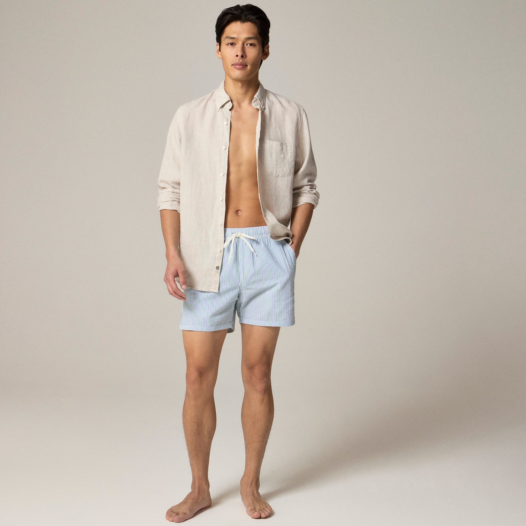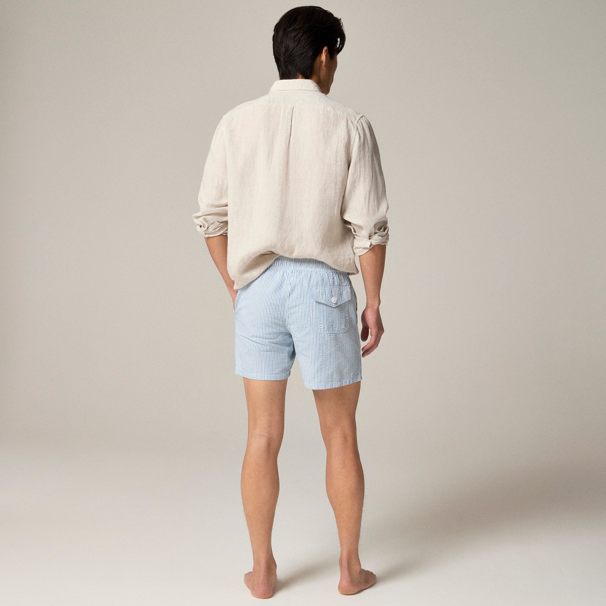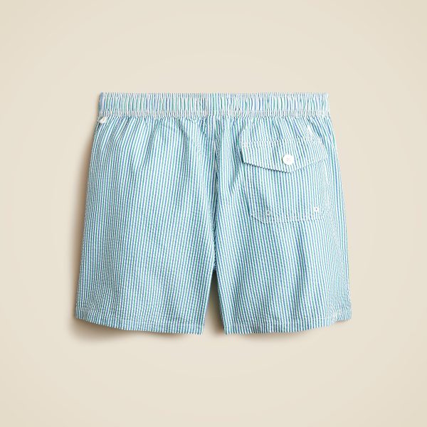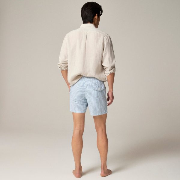 We’ve updated the classic swim trunk with a modern fit while keeping its old-school drawstring waist and adding a mesh lining to keep you comfortable in the water (and when you’re lounging poolside or on the beach). Fun fact: Seersucker takes its name from the Persian phrase, u003ciu003eshu0026icirc;r-o-shakaru003c/iu003e (u0026quot;milk and sugaru0026quot;), which describes its alternating smooth and textured stripes.