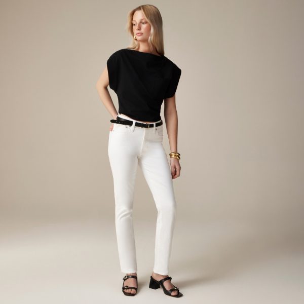 We took your favorite throwback-inspired fitu0026mdash;with a high rise and a cool, straight legu0026mdash;and cast it in a bright-white wash. This pair is made with a recycled polyester that is crafted from recycled plastic bottles, yarns and fabric scraps.