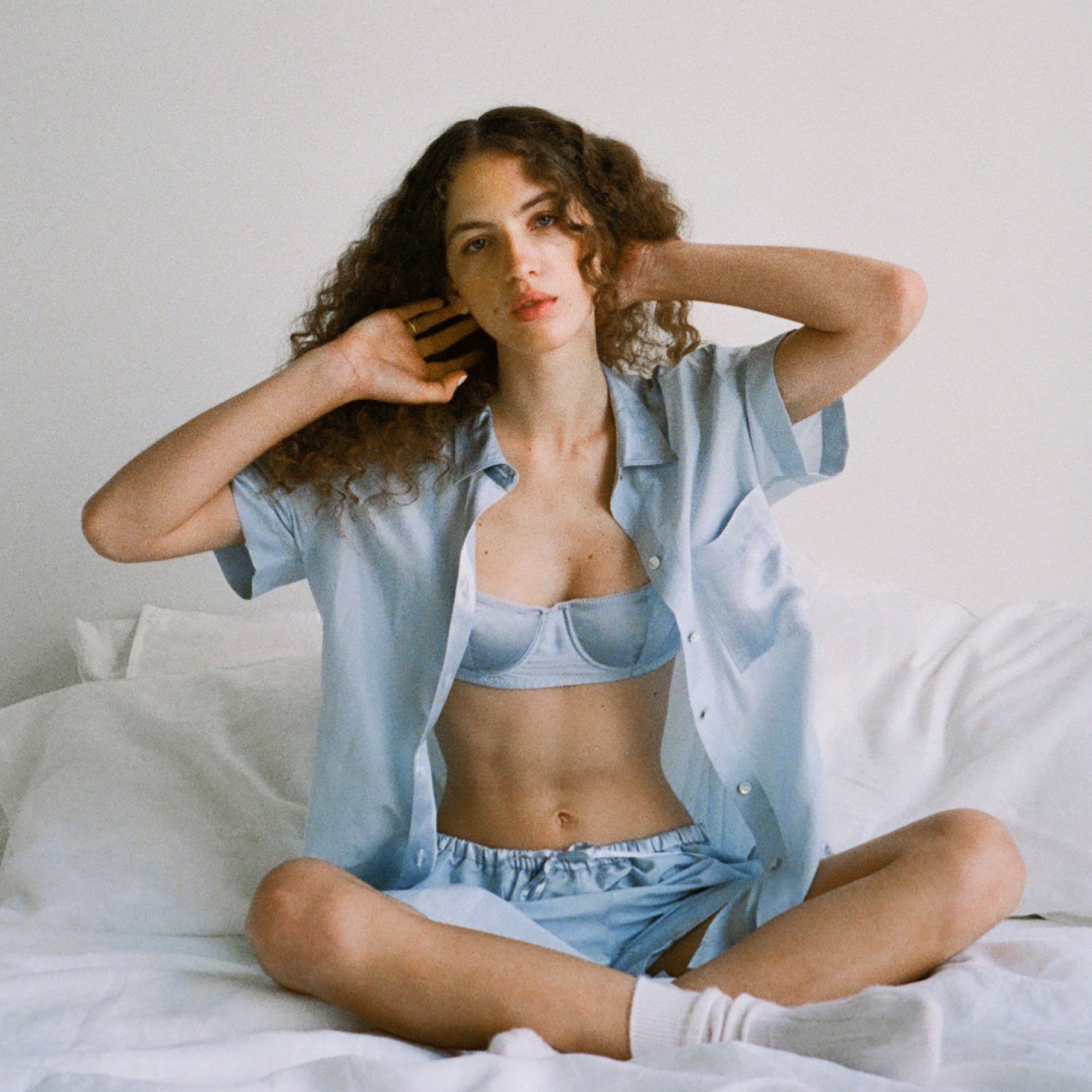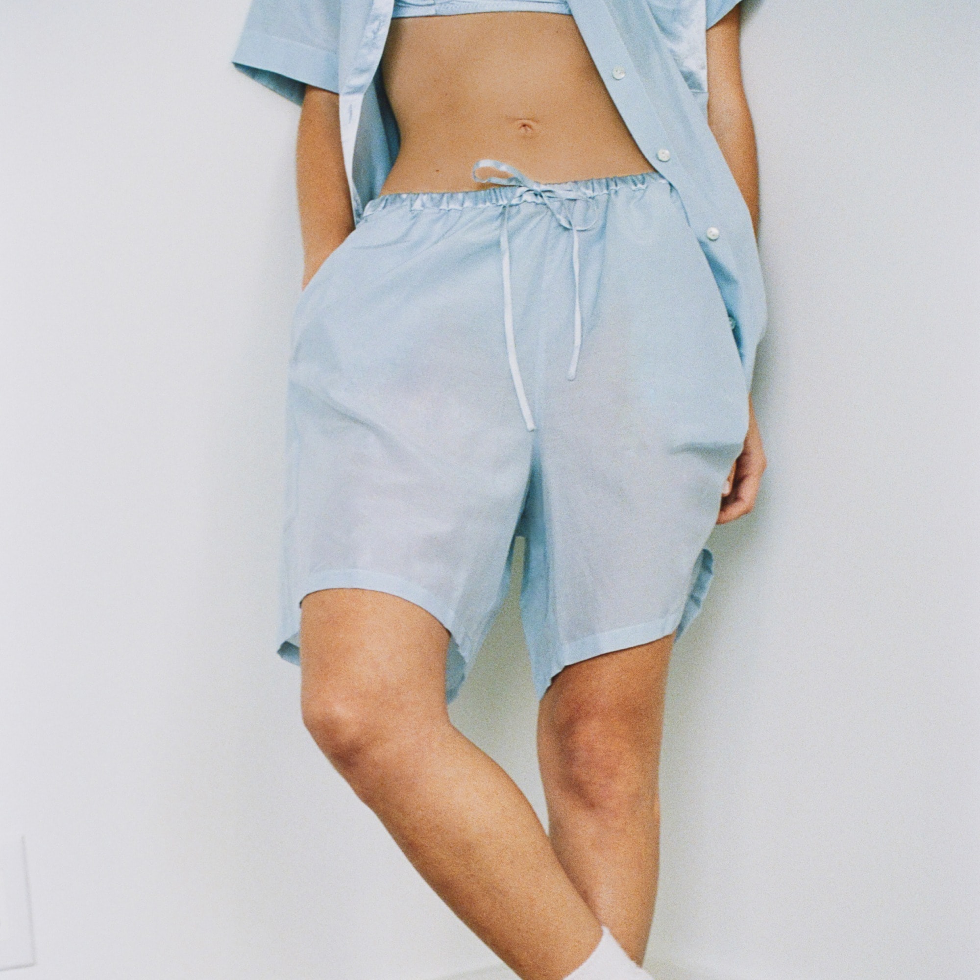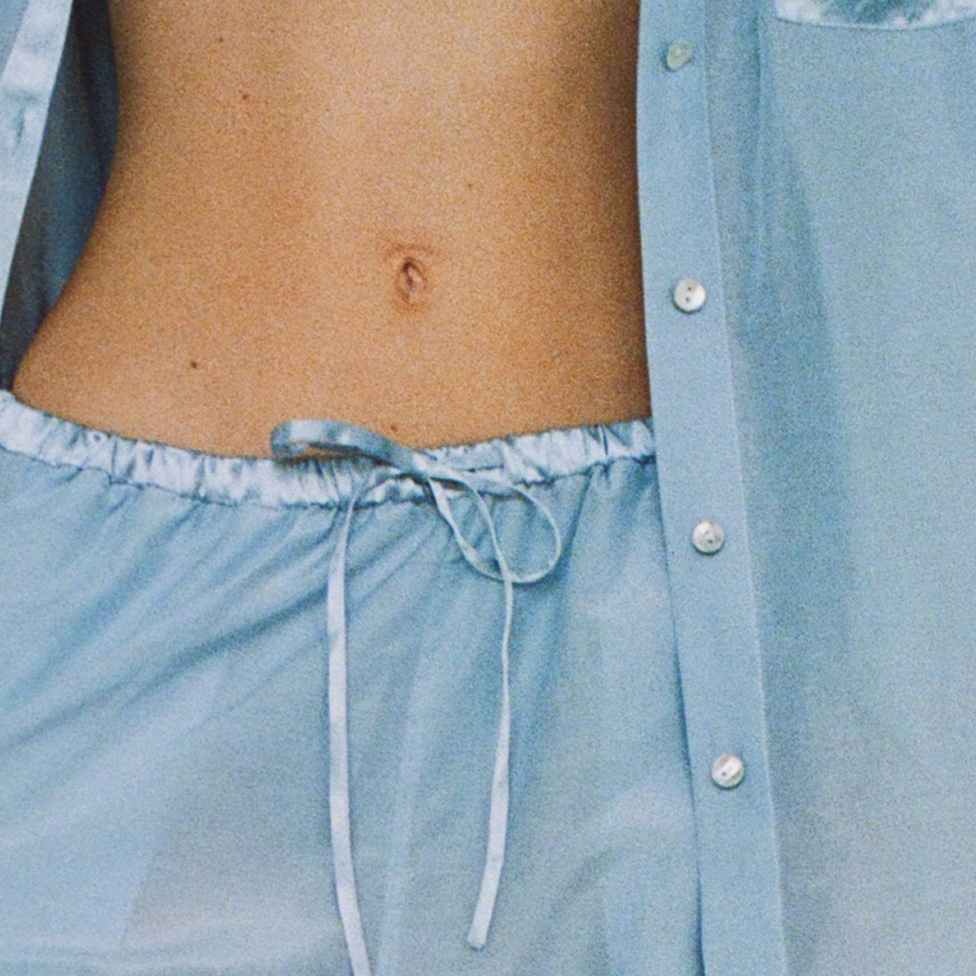 Introducing Araks X J.Crew. We collaborated with designer (and J.Crew alum) Araks Yeramyan on an exclusive collection of pajamas and lingerie that celebrates our shared love of unexpected color combinations and thoughtful details. This airy set comes with a short-sleeve top and an easy-fitting short, complete with silk trims and a subtly sheer finish. Plus, the silk in this style is bluesignu0026reg;-approved and crafted at a LEEDu0026reg;-certified facility whose manufacturing process uses less water and energyu0026mdash;and it’s dyed without hazardous chemicals.