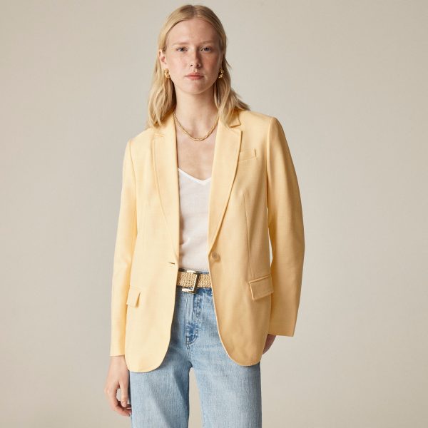 A modern take on classic tailoring. It comes in a relaxed, subtly oversized fit with a single button closure and a notched lapel for a polished finish. Plus, it’s made from our new luster canvas, a modern take on vintage-inspired suit fabrics with a summery basketweave texture, lots of drape and a lightweight feel.