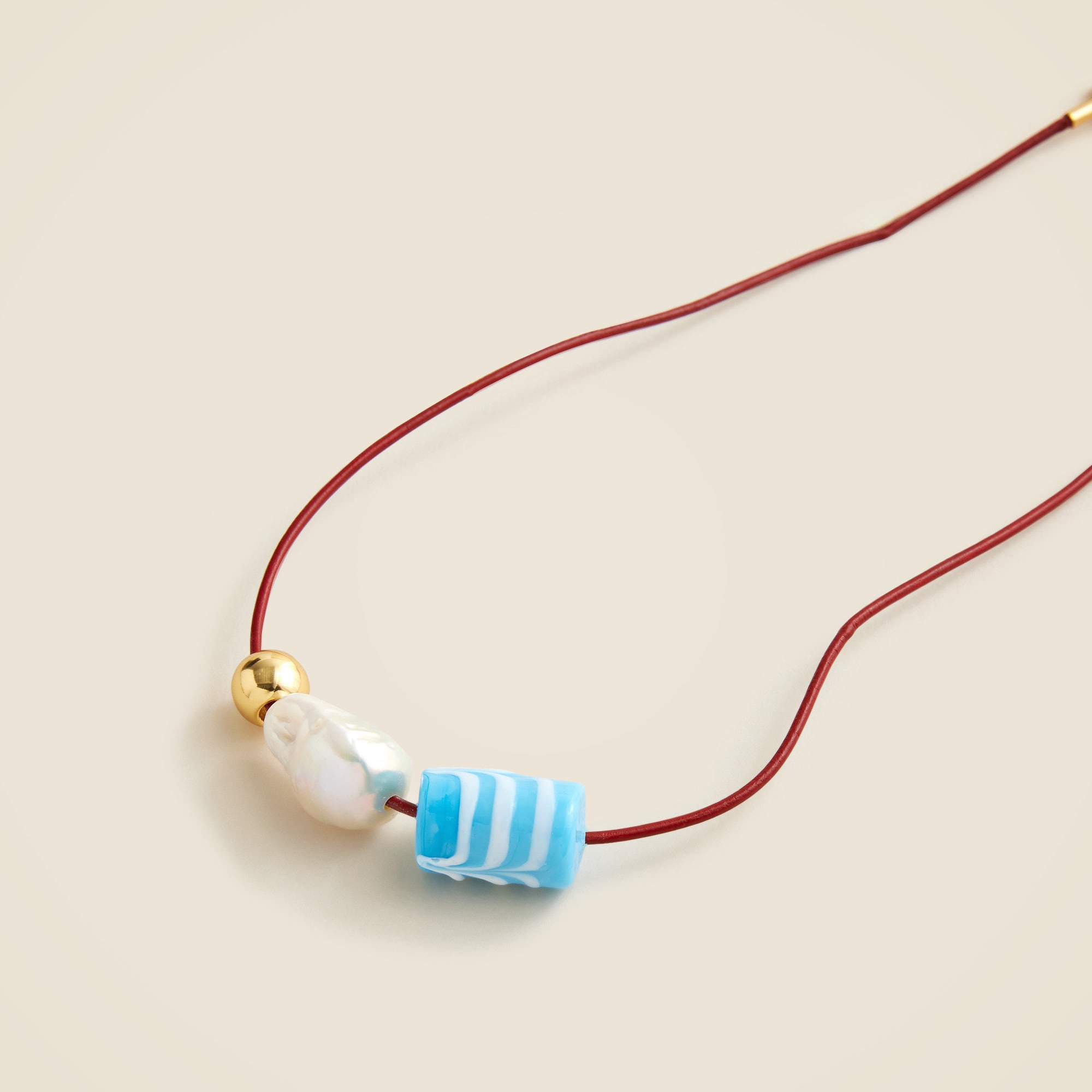Inspired by classic summer-camp necklaces. . .This mixed-bead style on a colorful leather cord will add a dose of joy to all of your outfits. Want to keep your jewelry looking like new? We recommend removing it before showering or exercise and putting it on after applying hair products or perfume. To clean your pieces, polish them with a soft, dry clothu0026mdash;and when not wearing, store them in a pouch or jewelry case.