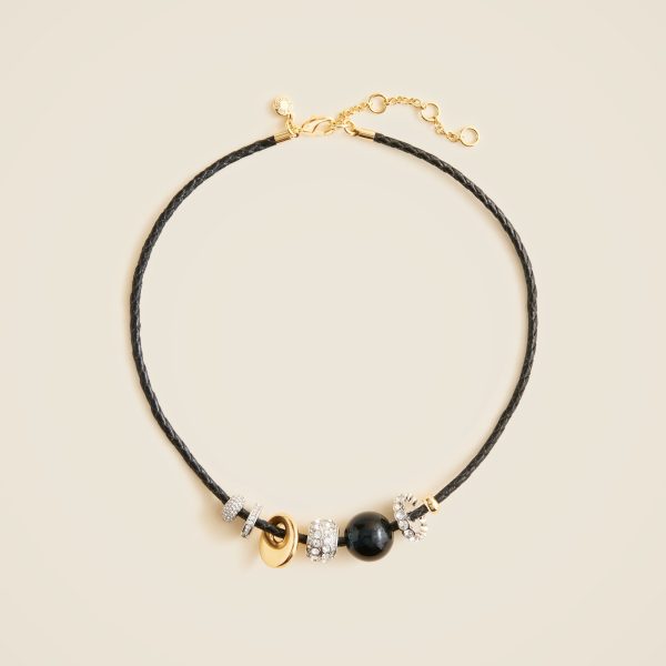 Add sparkle to special days (and every day!) This leather cord necklace featuring pavu0026eacute; crystal-embellished beads always looks good. Want to keep your jewelry looking like new? We recommend removing it before showering or exercise and putting it on after applying hair products or perfume. To clean your pieces, polish them with a soft, dry clothu0026mdash;and when not wearing, store them in a pouch or jewelry case.