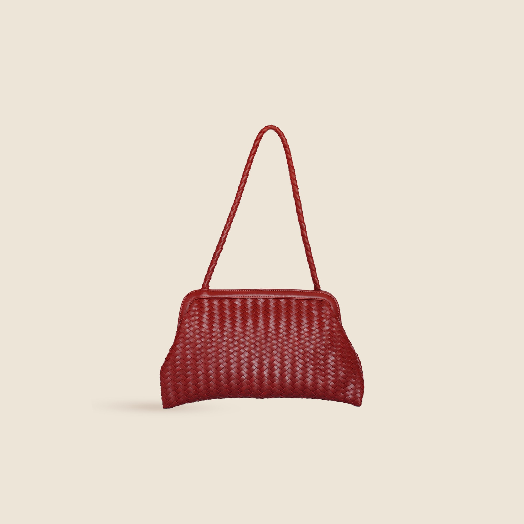 Bembien is a collection of woven bags handcrafted by artisans from around the world. Ten percent of all Bembien proceeds goes to Nest, a nonprofit dedicated to the social and economic advancement of artisan communities all around the globe. A chic, midsize bag for everyday. Handcrafted in woven leather. The vintage-inspired, slouchy silhouette features a structured top frame with a magnetic closure and braided shoulder strap. An easy upgrade to any outfit.