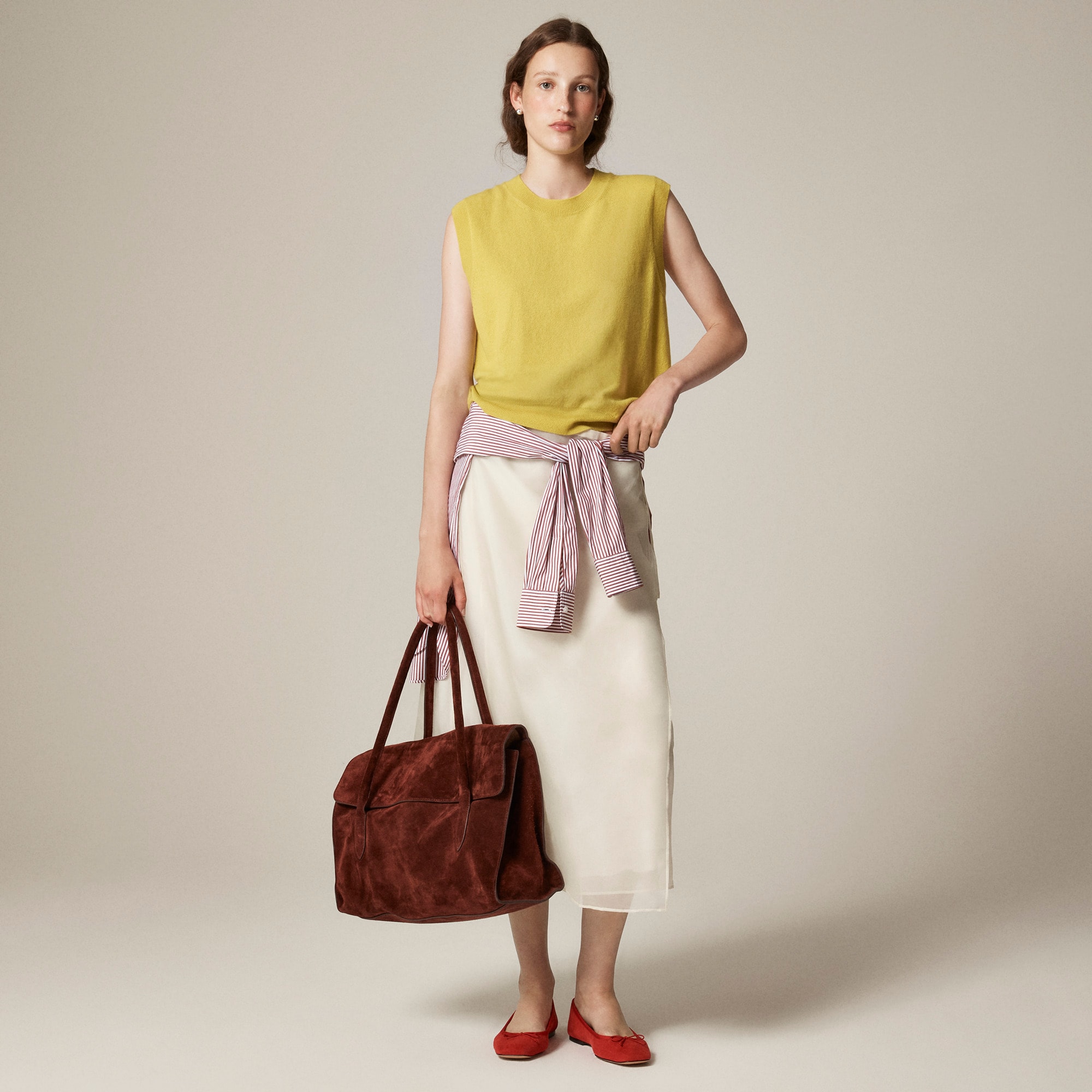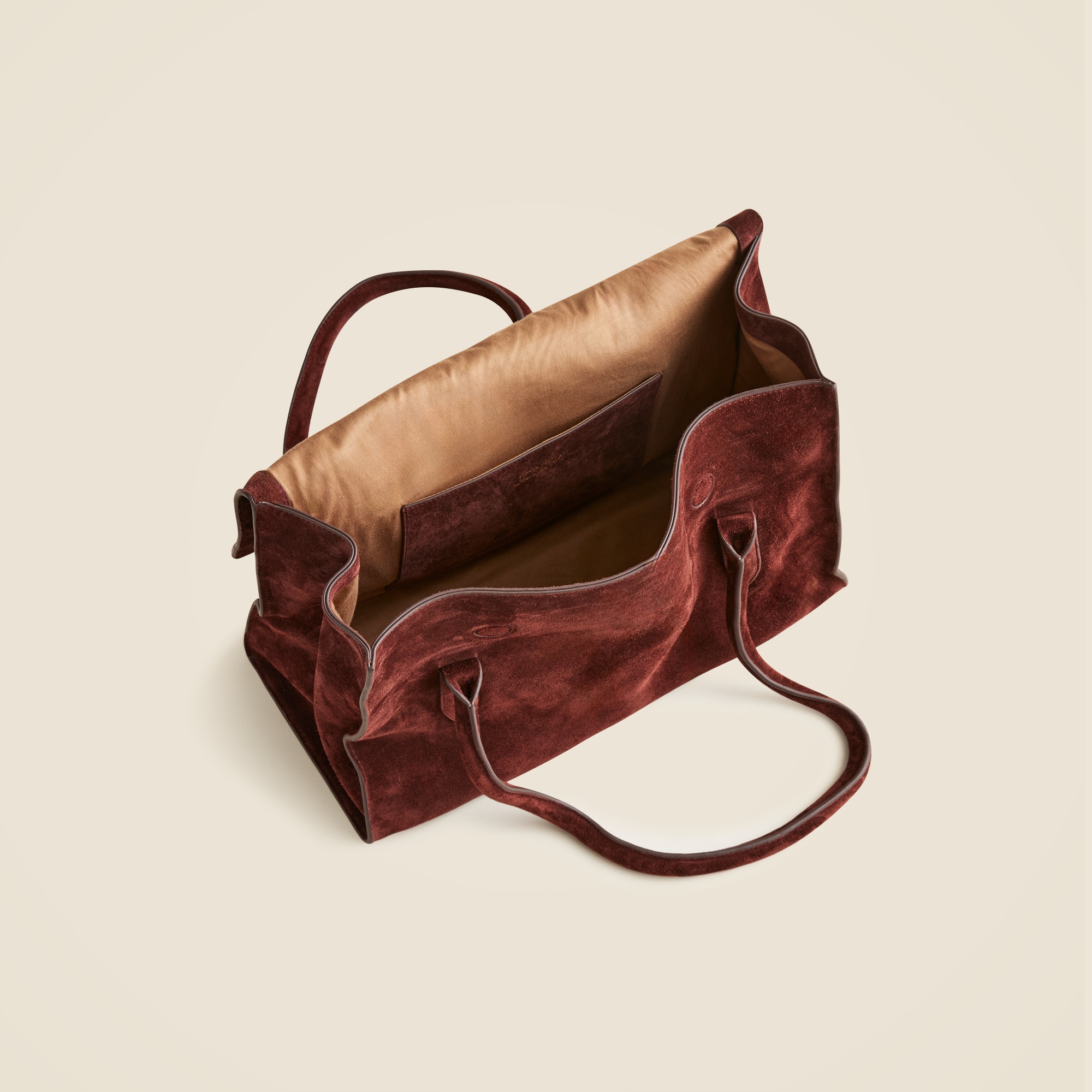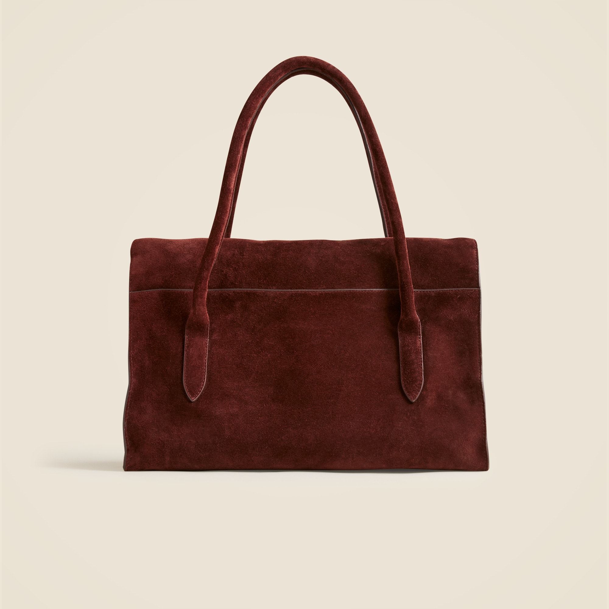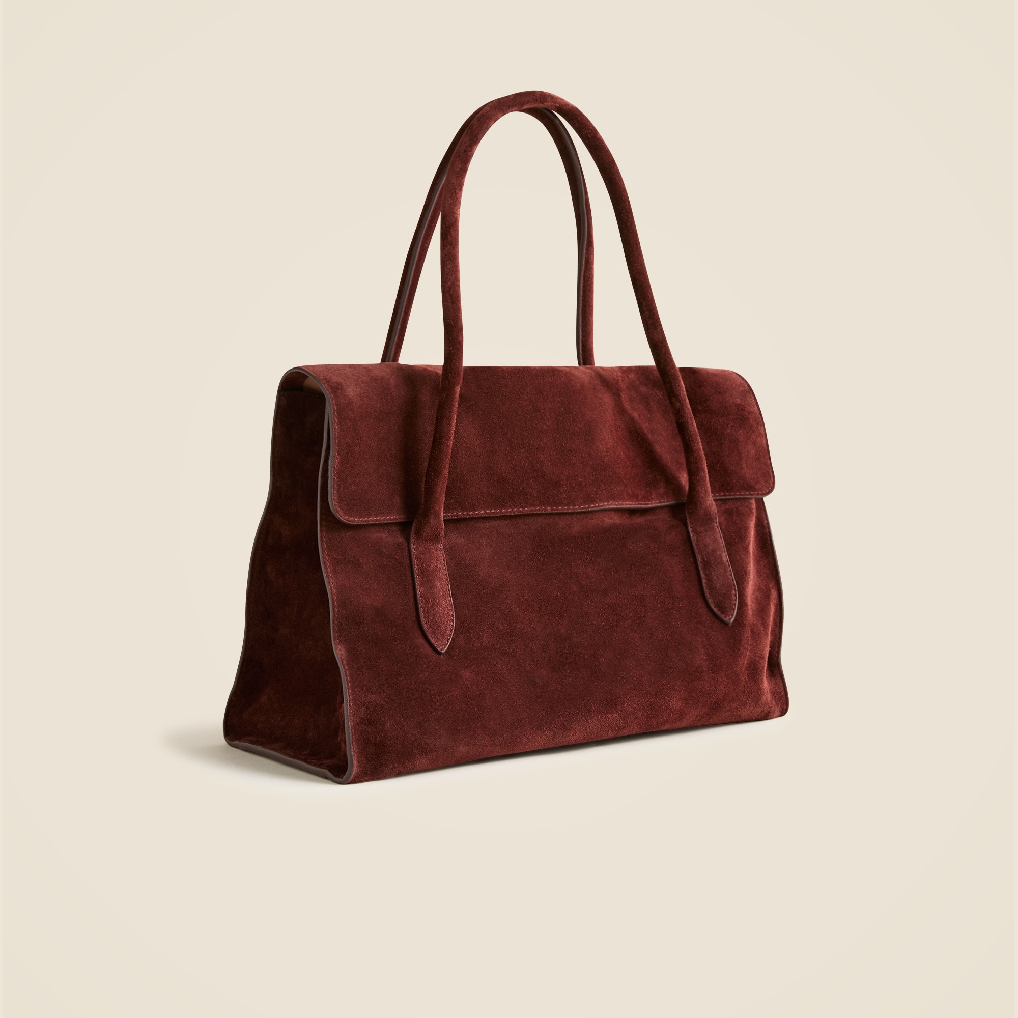 Meet one of the newest members of the Berkeley family. . . This season, we took our signature suede tote and sized it upu0026mdash;making room for everything you need (and then some). With a slightly more structured silhouette, a sleek flap with a metallic closure and an interior spacious enough for workdays, weekends or whatever’s next, it’s the all-day, everyday bag you’ve been waiting for. Please note: The color in this fabric may transfer and should be handled with care.