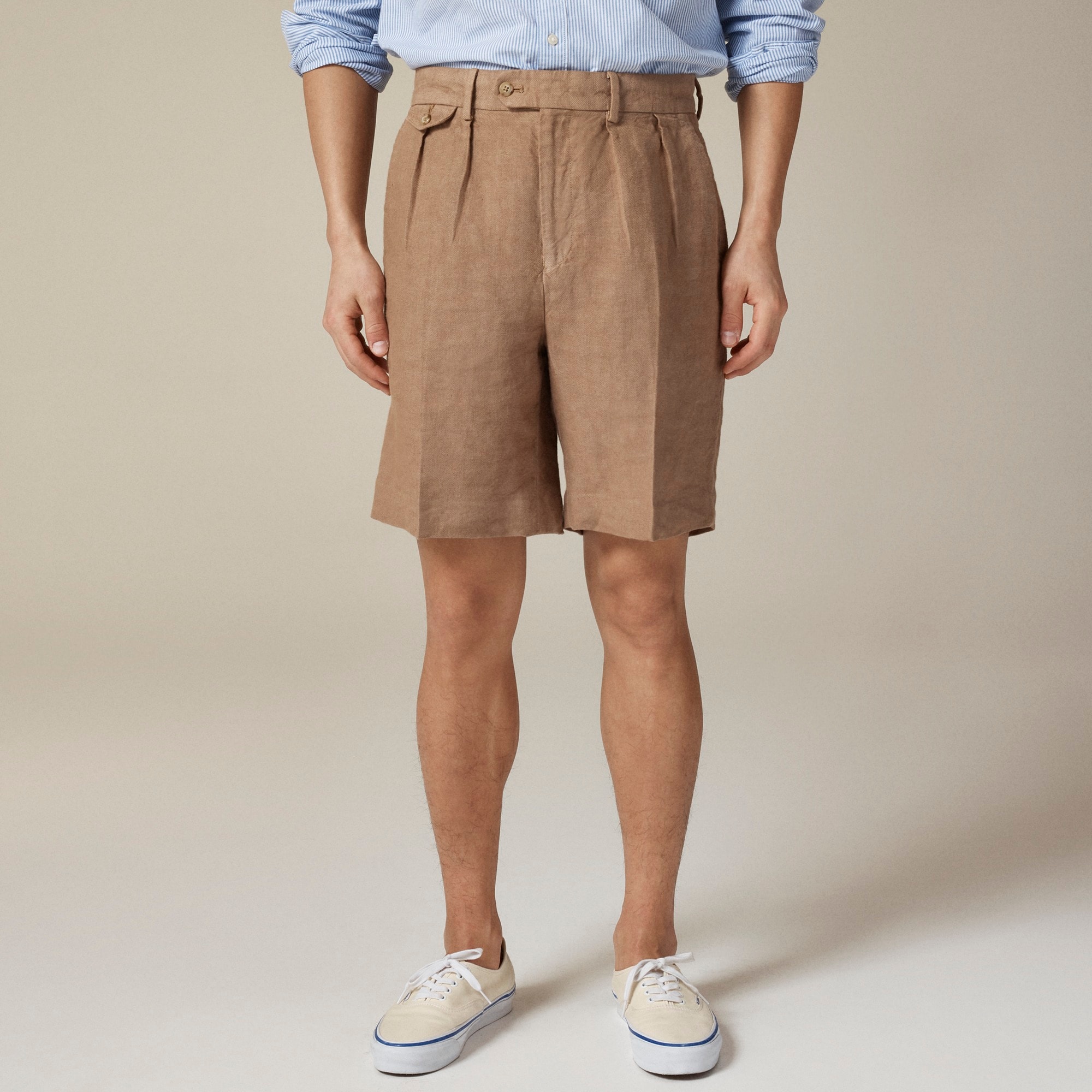 Big-fit Pleated Suit Short In Italian Linen For Men