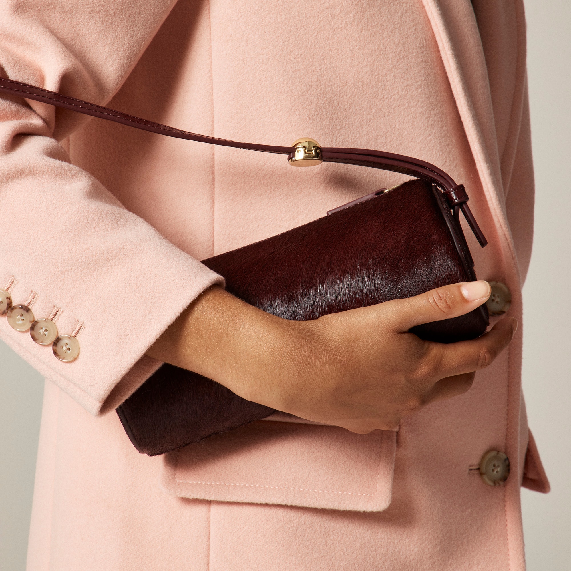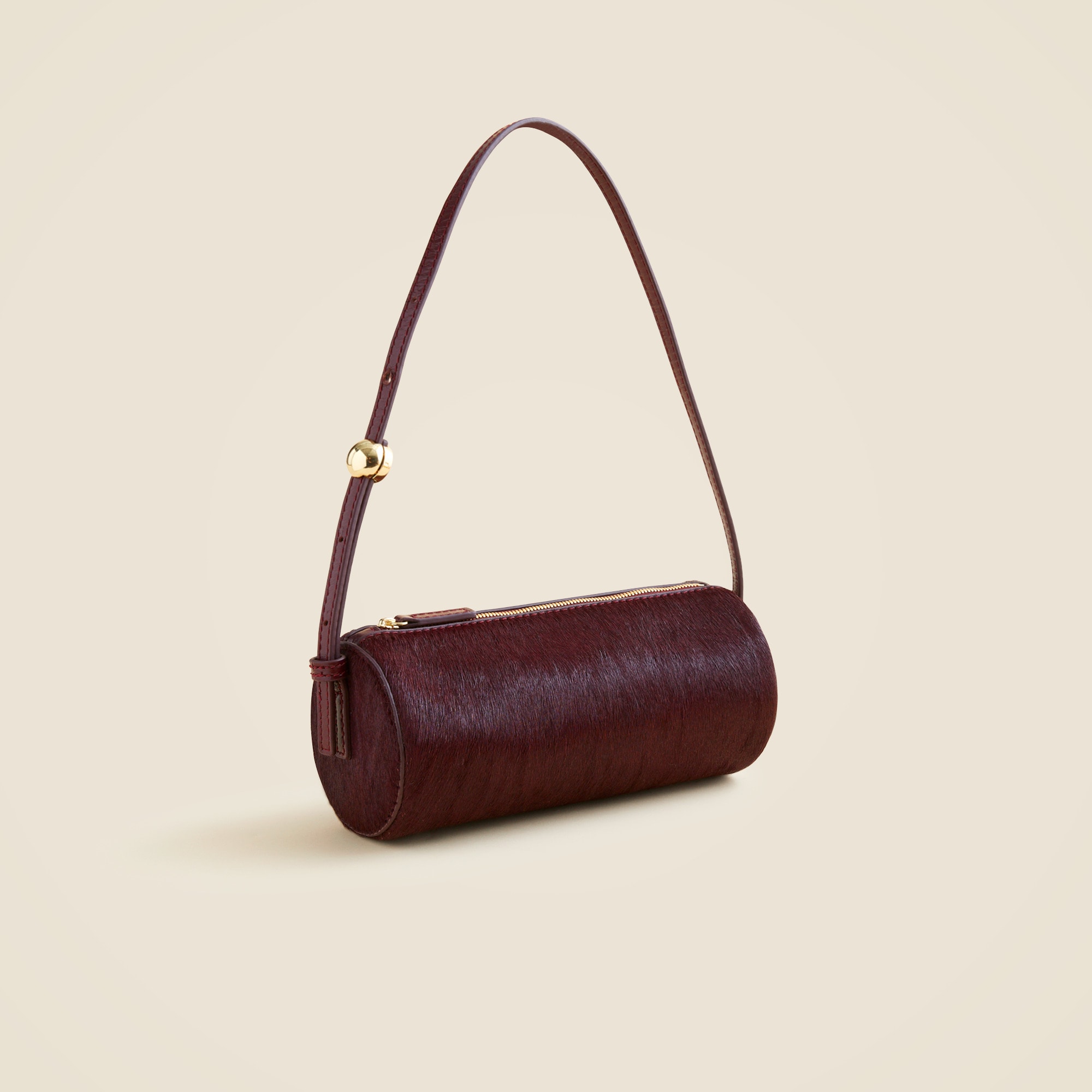 Meet the bag of the season. This eye-catching pencil bag features a cool rounded silhouette that fits all the essentials (so you can take it anywhere and everywhere). It’s finished with a gold bauble detail to adjust the length of the strap, plus luxe calf hair for the perfect touch of texture.
