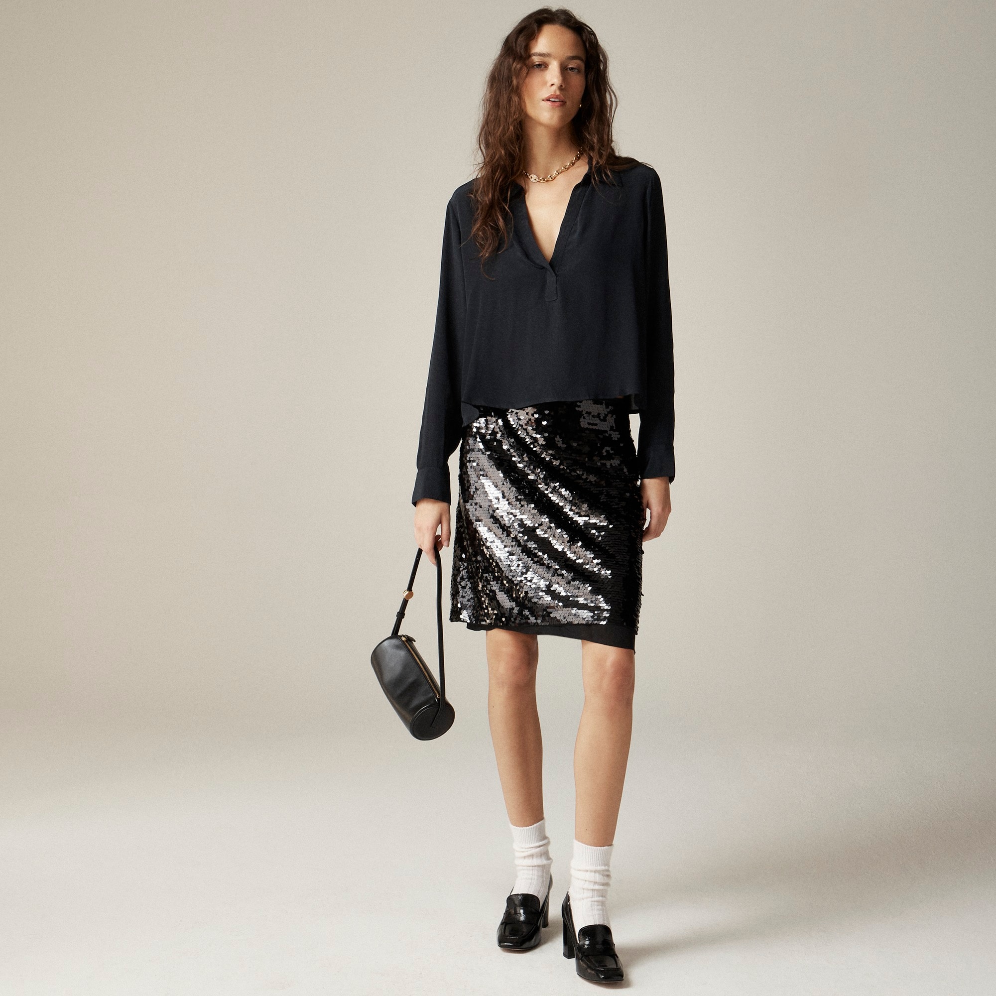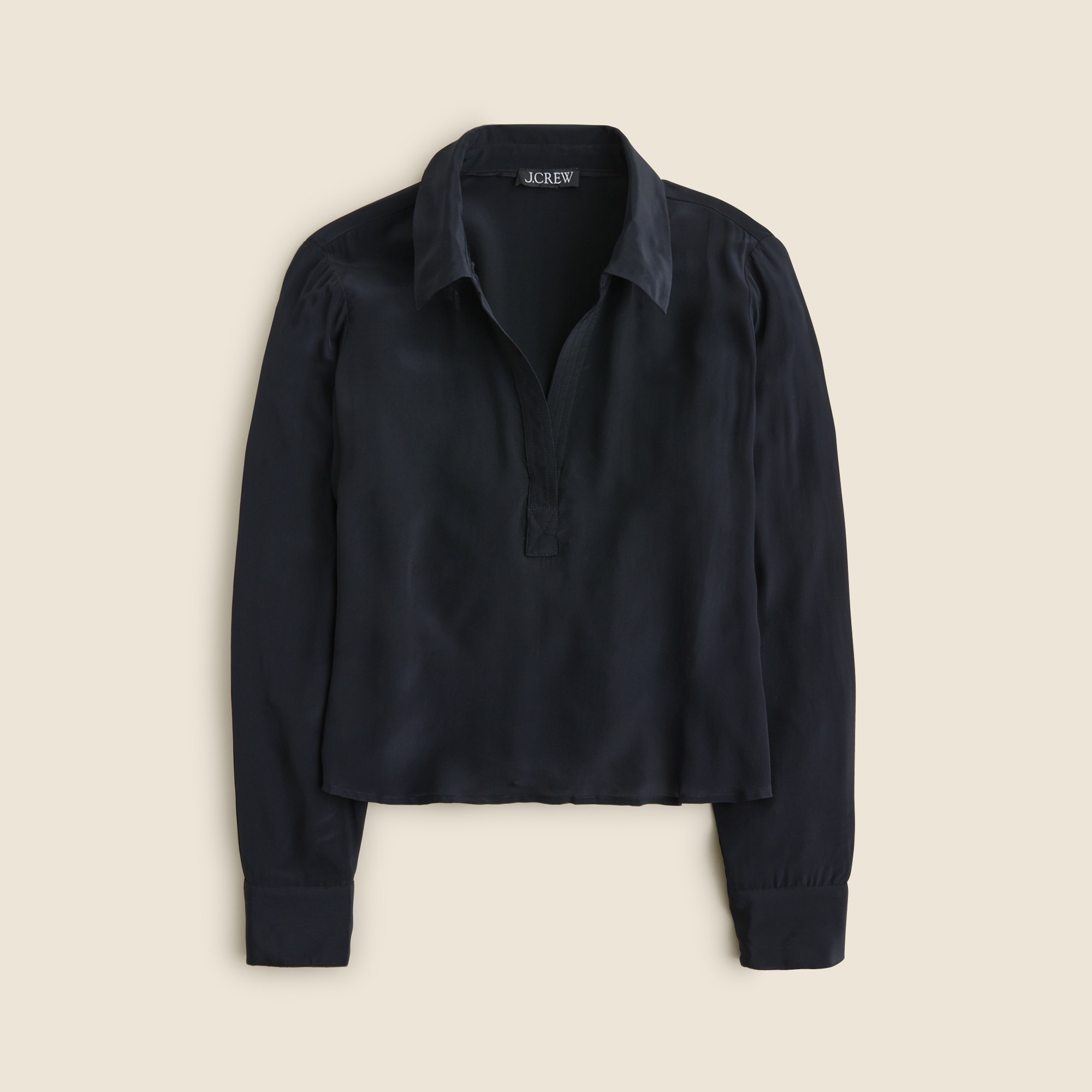You new favorite wear-with-everything top. . .This easy style features a V-neck with a cute collar and a relaxed, off-the-body fit. Plus, it’s crafted from our crepe de chine fabric that’s silky-soft and a little bit swishy for a polished look you’ll love.