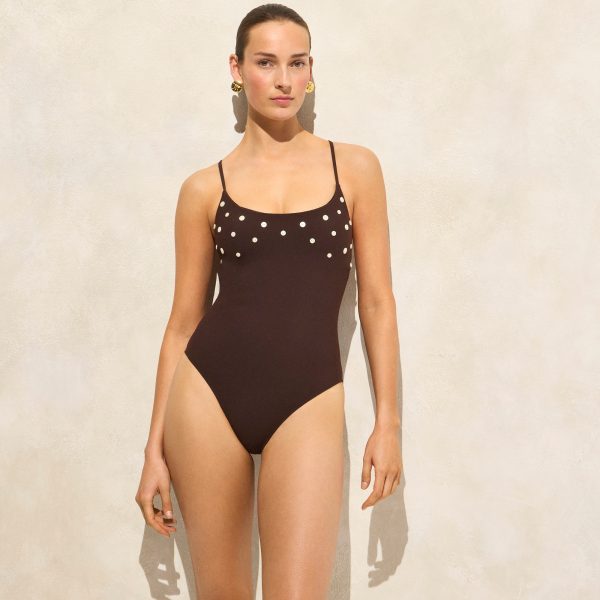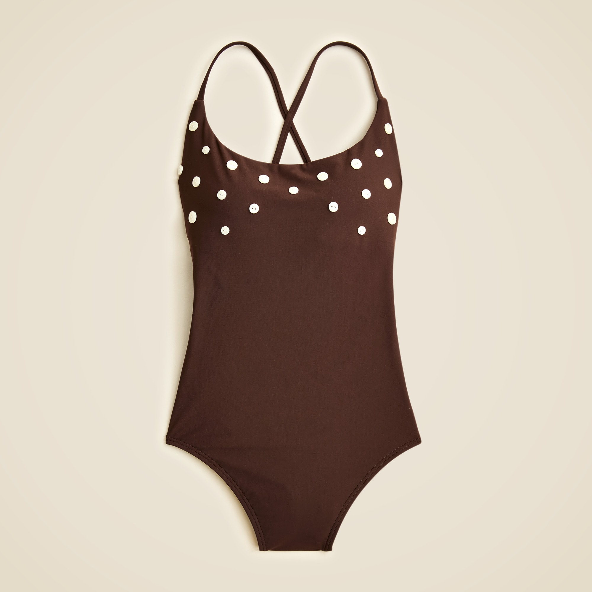A heritage-inspired silhouette with trending new details. It comes with a low-dipping back, a medium amount of coverage and scattered buttons across the top. Pro tip: It pairs perfectly with the matching slip skirt for your easiest beach-to-dinner look ever.
