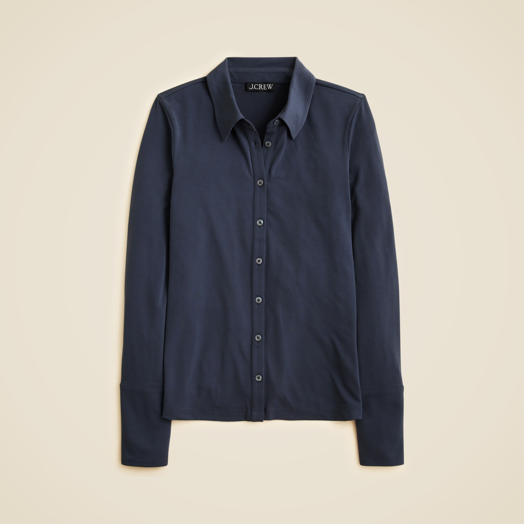 A sophisticated piece with endless styling potential. This elevated button-up is drapey and crafted from our smooth matte jersey that skims the body and comes with a touch of stretch for all-day (and all-night) comfort.