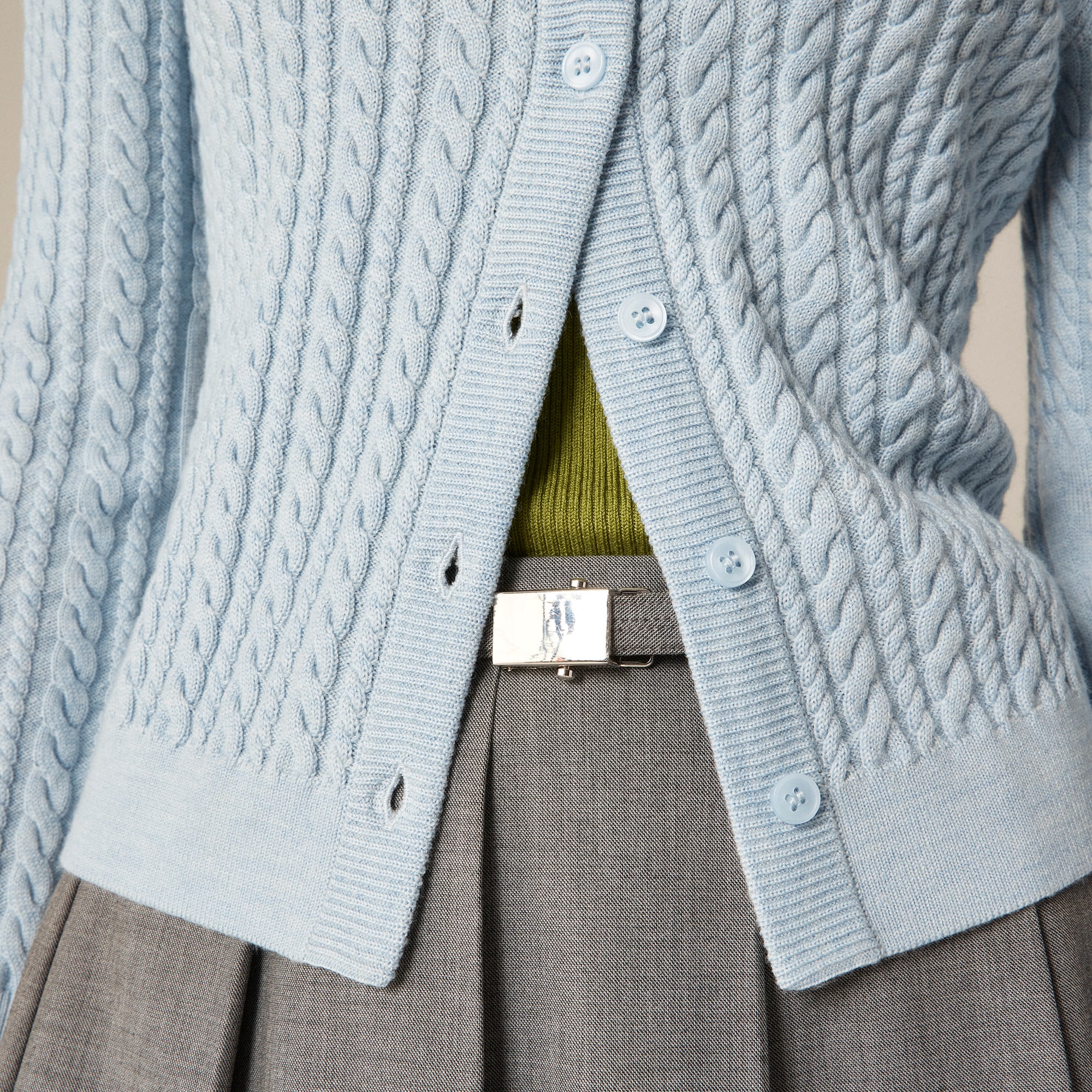 Cable-knit Crewneck Cardigan In Merino Wool For Women