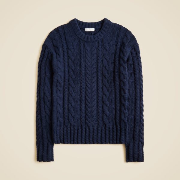 Our sweaters are famous for a reason. . .Knit with soft 100 percent cotton, this relaxed crewneck style comes with a heritage-inspired cable-knit texture, a relaxed fit and an intricately braided hem that hits at the hip. In other words, it adds the perfect amount of polish to everything you pair with it.