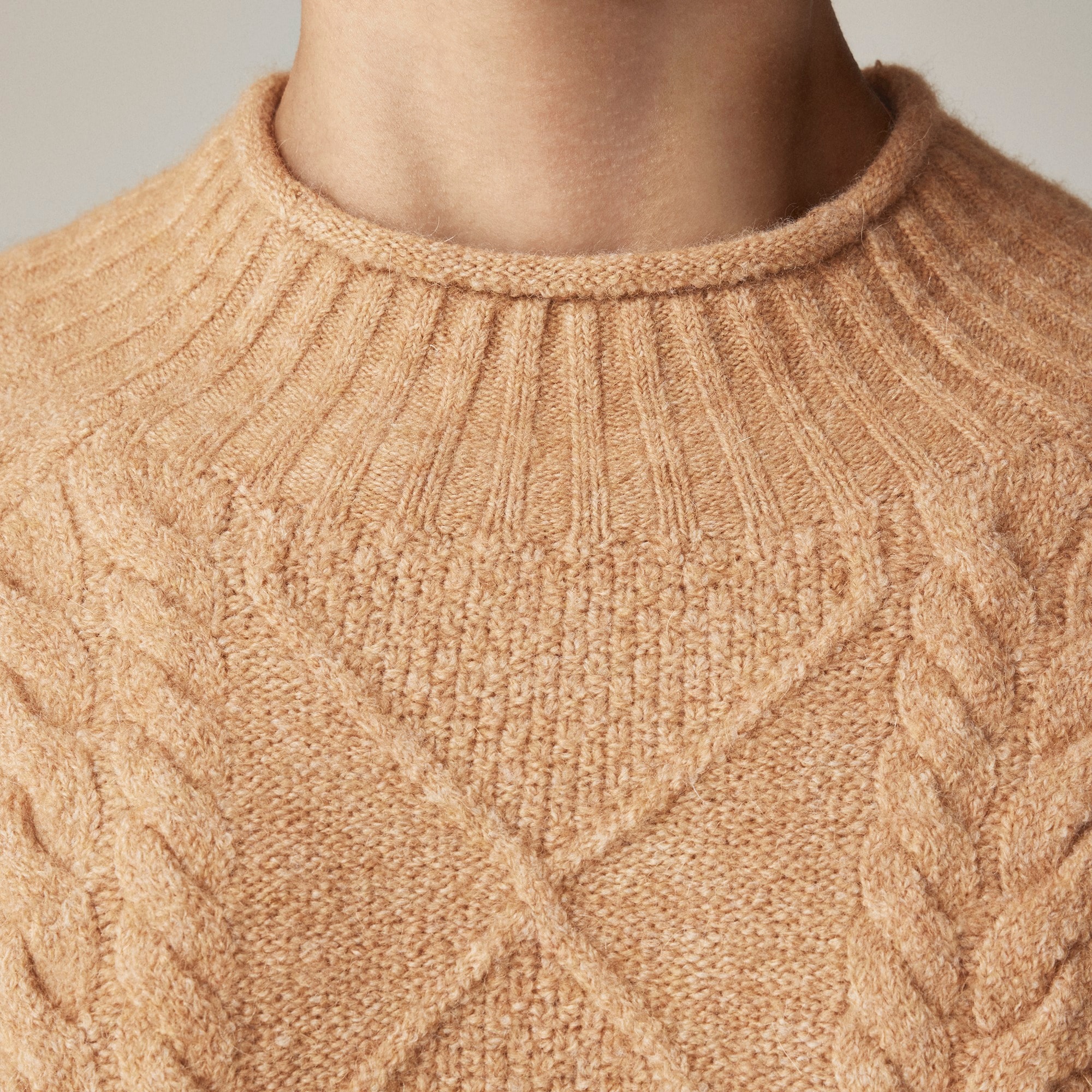 A classic update on our iconic Rollneck sweater. . .Crafted from a magical mixture of merino wool, alpaca and stretch, we revamped this heritage silhouette with allover cable-knit stitching, so it’s cozier than ever.