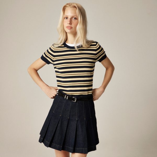Our ’90s-inspired layering piece, redesigned for hot days. . .The fit of your favorite tee meets the feel of your favorite sweater. This easy layer sits closer to the body and is incredibly soft to the touch. It comes with ribbed trim details at the collar and sleeves for added texture. Plus, it’s crafted from smooth merino wool with a touch of stretch at the cuffs, so it’s warm enough to wear on its own now and light enough to layer later.
