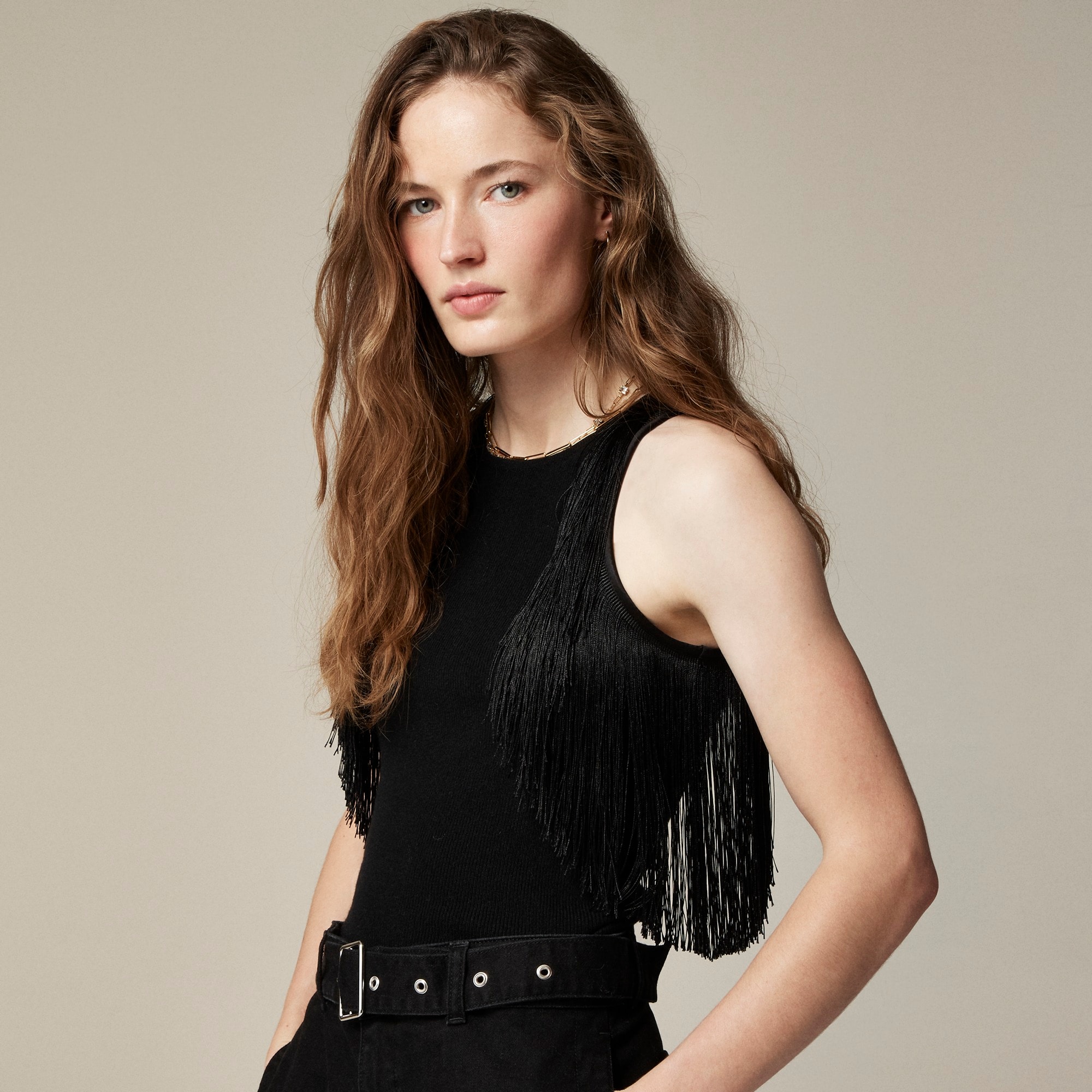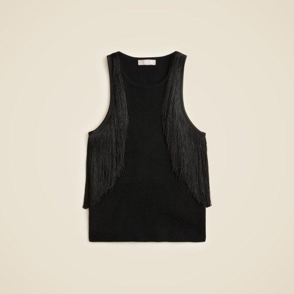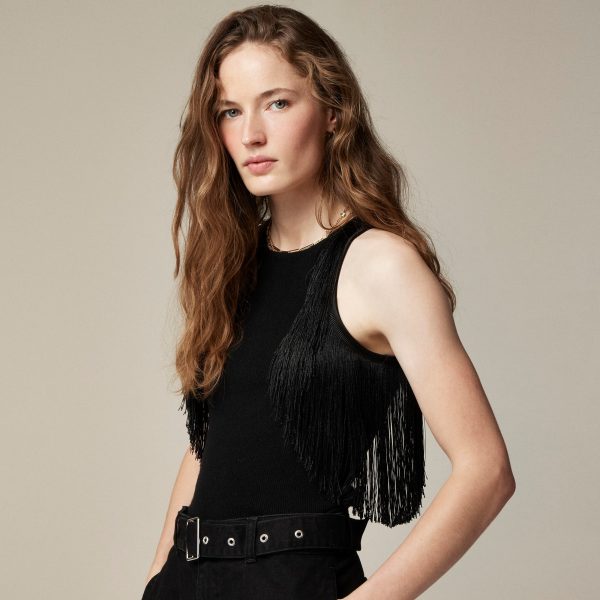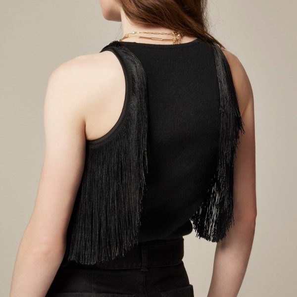 A playful take on the tank in luxe cashmere. . .Embellished with fringe details at the arms for all the movement and texture and designed in a more fitted silhouette that sits close to the body. Plus, it’s crafted from supersoft cashmere with a touch of stretch so it forms to your figure.