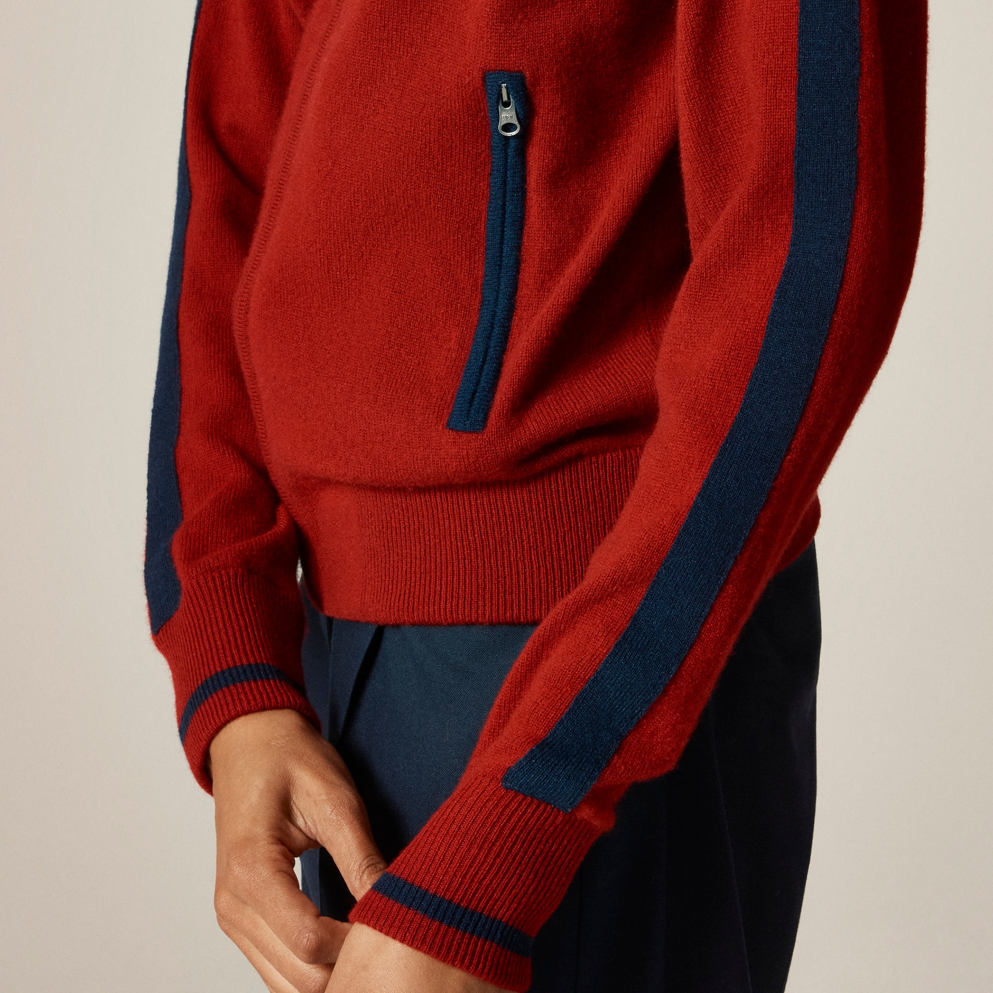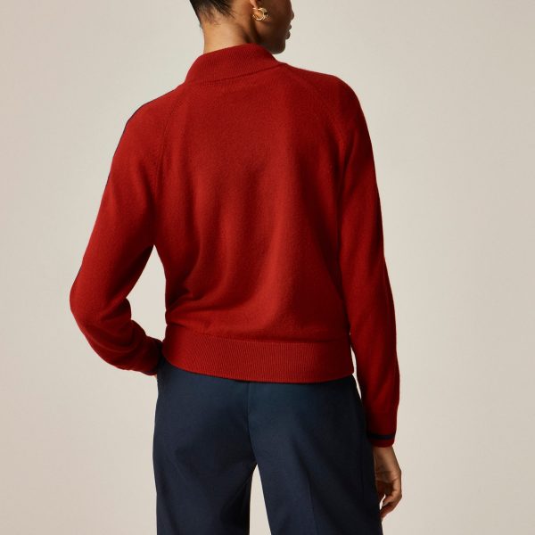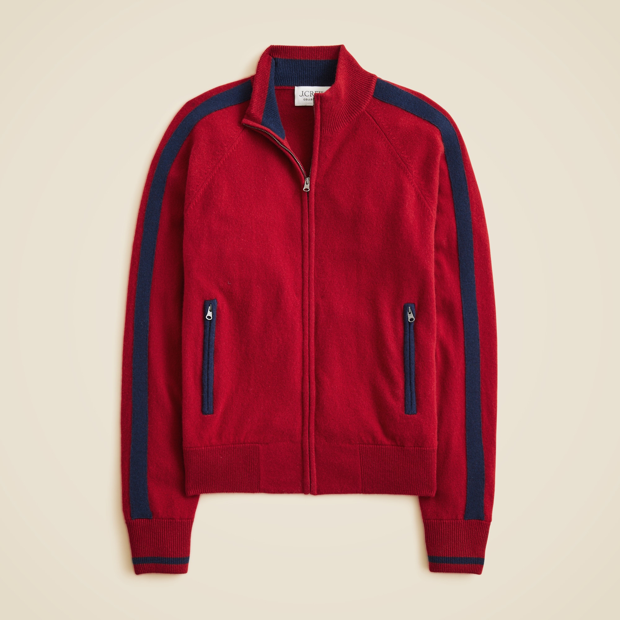 When you think of cashmere, you think of J.Crew. We’ve spent decades fine-tuning our collection, sourcing the softest, longest-lasting fibers and perfecting every detail from fit to fabric to color. This sporty-inspired style comes with zip details down the front and at the pockets, plus a higher neckline and contrast stitching that feels considered. Pro tip: Pair it with the matching cashmere pant for an impossibly soft set.