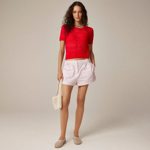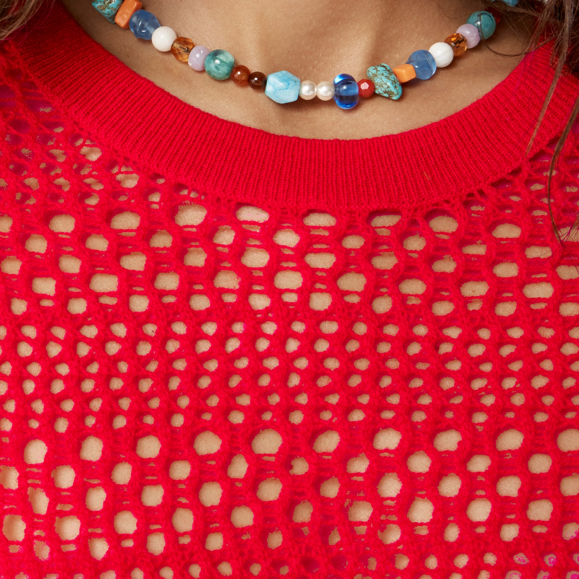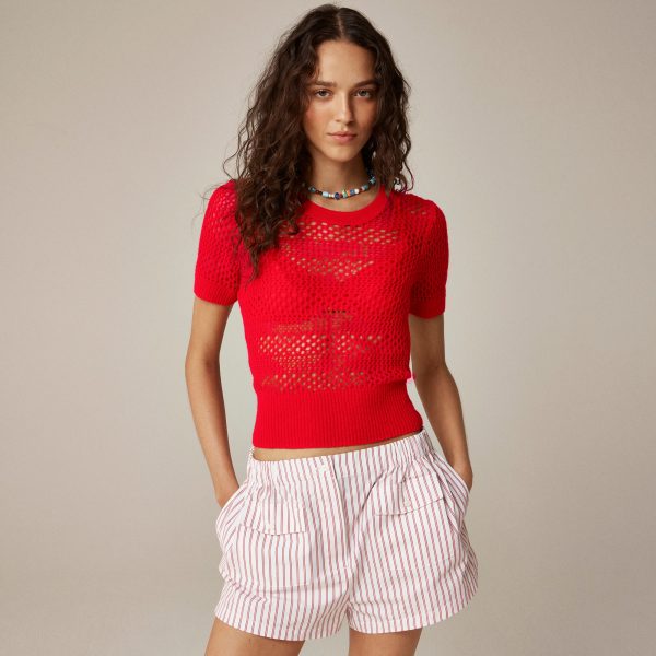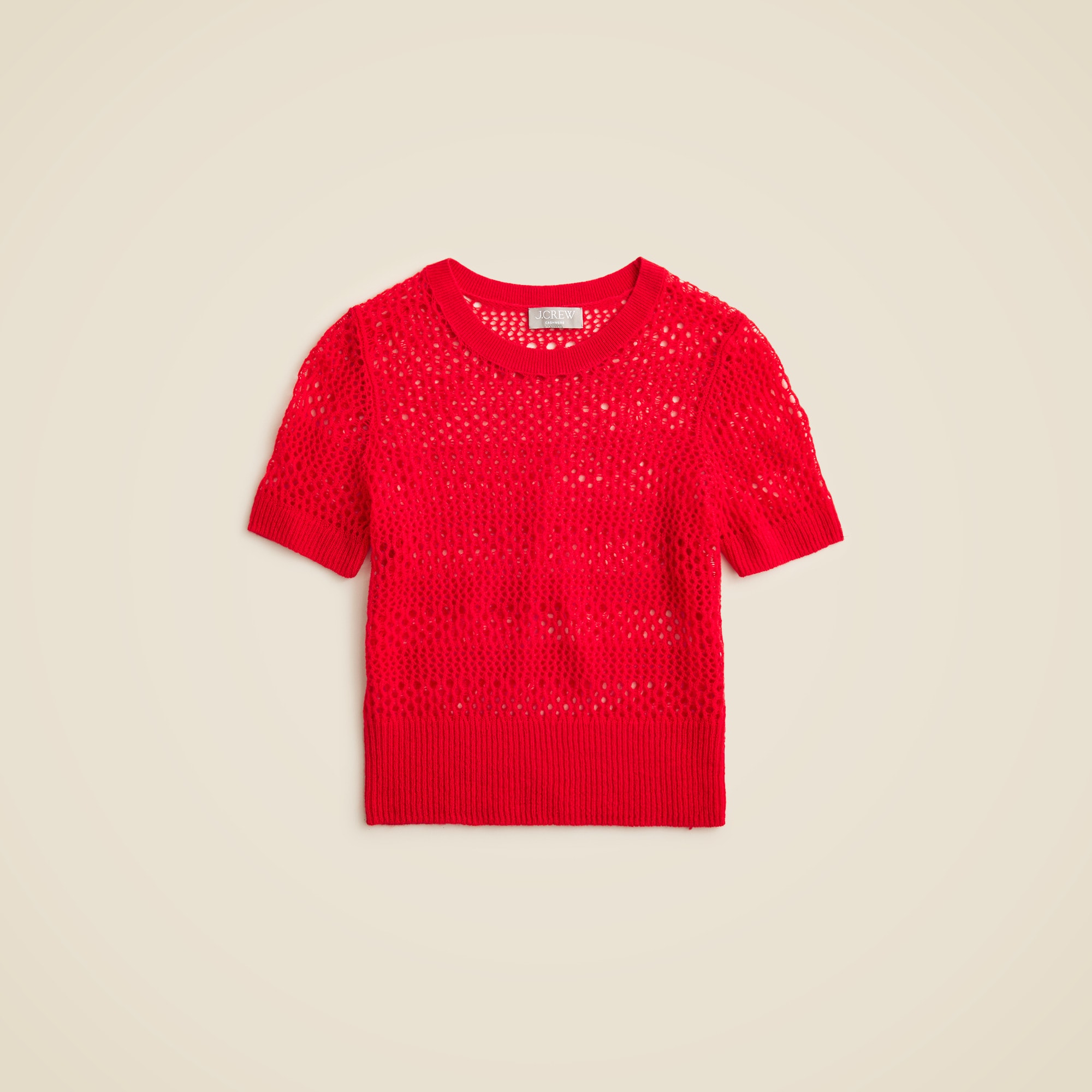 Your lightest layer in our finest fabric. This breezy tee is crafted from luxe 100 percent cashmere and knit in an oversized pointelle stitch that’s sheer and perfect for layering over tanks, bralettes or swimsuits. We’re proud to support responsible cashmere production through our partnership with the Aid by Trade Foundation (AbTF), a nonprofit that promotes sustainable agricultural development across the globe. We source cashmere that is certified to the AbTF’s The Good Cashmere Standardu0026reg;, which ensures the welfare of the cashmere goats, protects natural resources and improves the working conditions of farmers and farmworkers in Inner Mongolia.