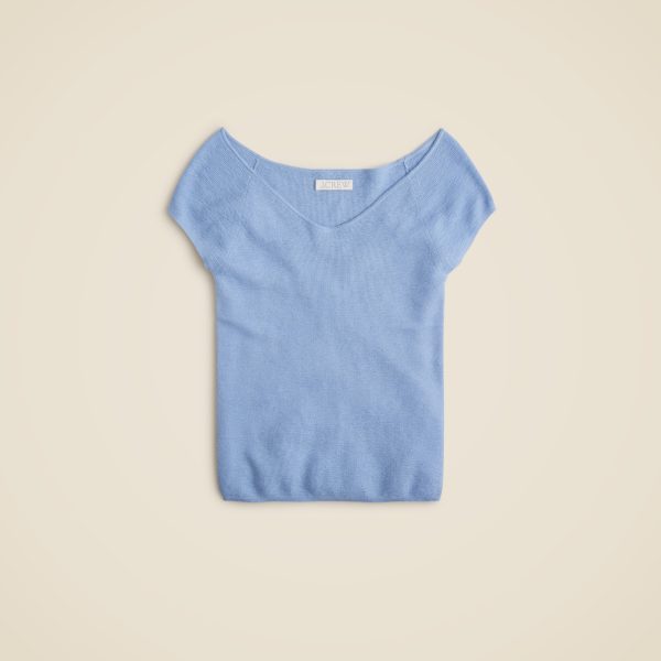 Meet our elevated new take on the sweater-tee. This fitted silhouette features a sweeping V neckline and romantic cap sleeves you can wear off the shoulder or a little higher up. Plus, it’s made from what just may be our most luxe fabric yet: a harmonious blend of cashmere and silk (with a touch of shine!) so light and fine, you’ll have to feel it for yourself.