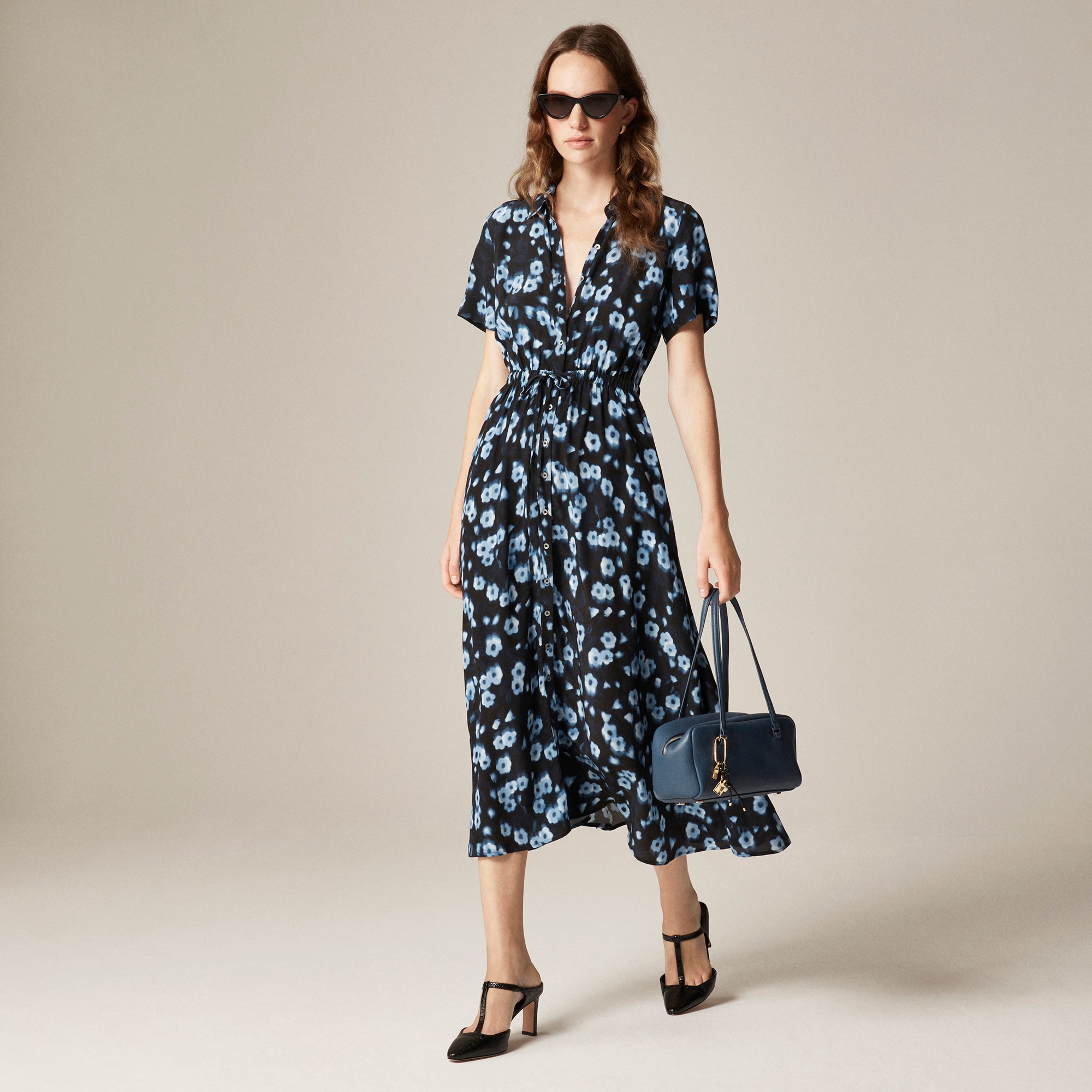 Cerise Shirt-dress In Blurry Floral Crepe De Chine For Women