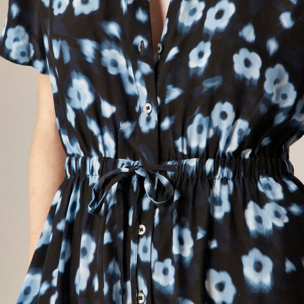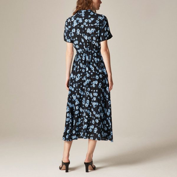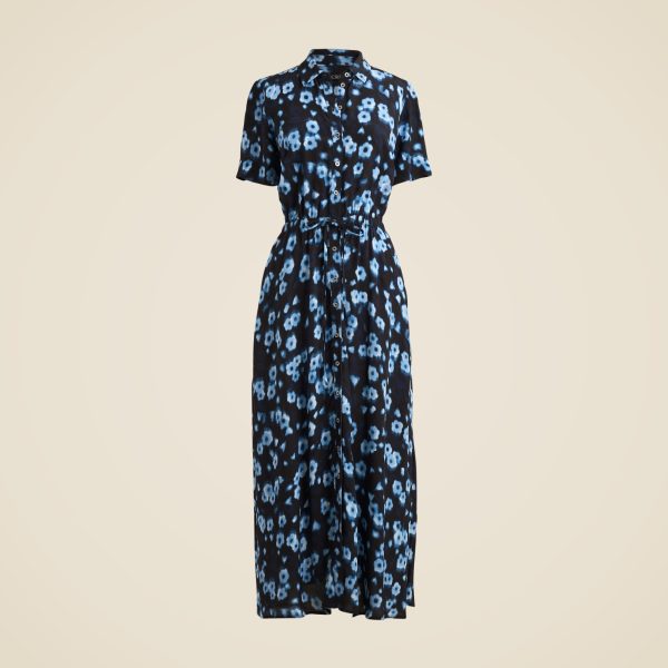 Cerise Shirt-dress In Blurry Floral Crepe De Chine For Women