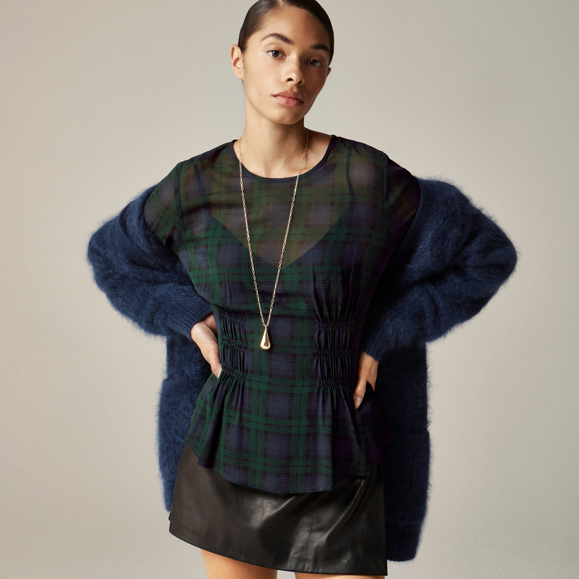 A polished pick for office hours and after-hours. This pretty top comes with pleat details at the waist for a cinched-in effect, plus gathered sleeves and a lightweight, subtly sheer chiffon finish.