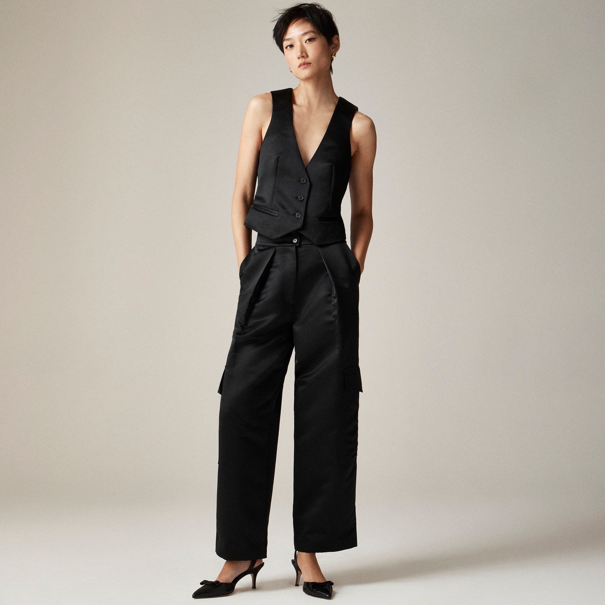 Introducing Christopher John Rogers X J.Crew. A limited-edition collection made in collaboration with the CFDA award-winning American designer who shares our love for declarative colors, pattern play and compelling textures. Both playful and thoughtful, inventive and inspired by tradition, our new collab celebrates the magic in the mix. This sleek style has a wider, high-rise waistband with a visible, three-button closure. It comes with front pleats and is crafted from our smooth, glossy duchesse satin.