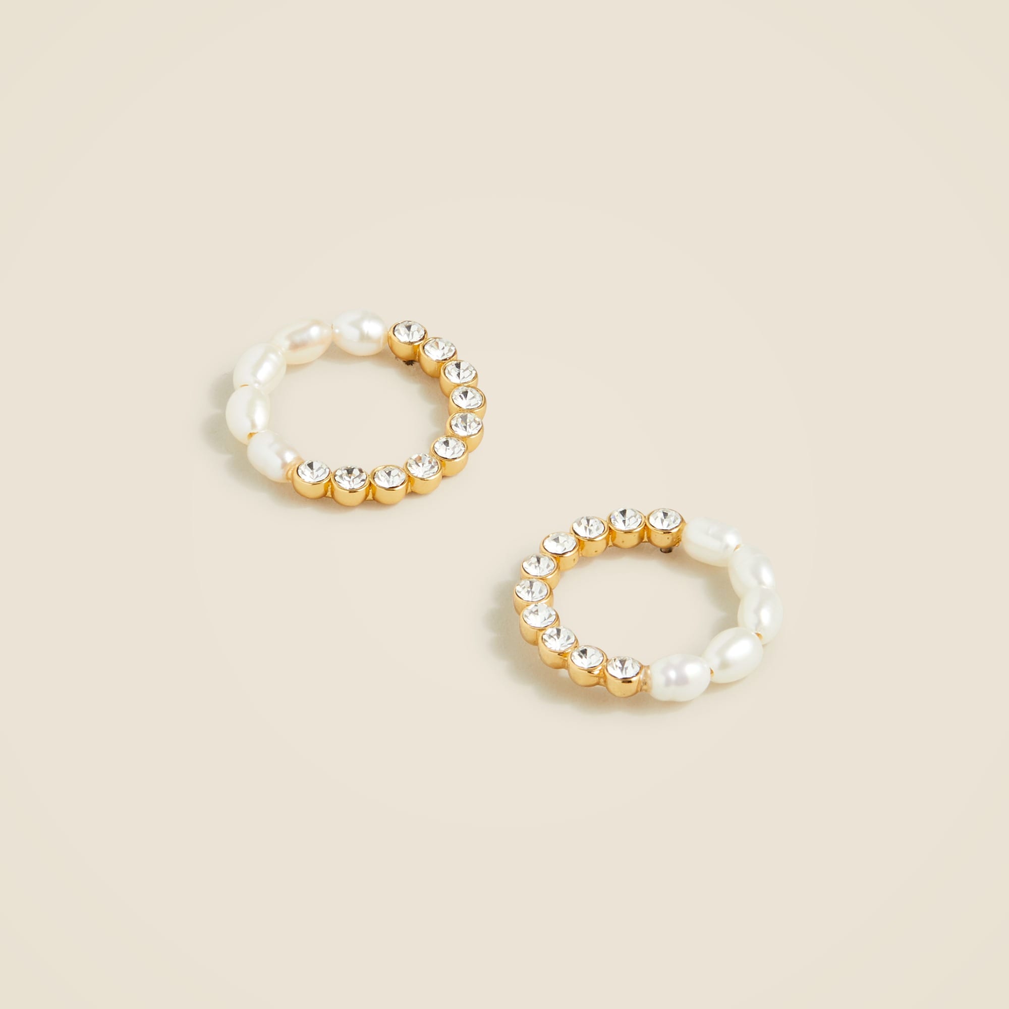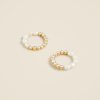 This season, we’re all about new takes on classic pearls, and these circular stud earrings are most certainly one of them. Feel-good fact: These earrings were made using eco-friendly recycled-glass and -brass casting. Want to keep your jewelry looking like new? We recommend removing it before showering or exercise and putting it on after applying hair products or perfume. To clean your pieces, polish them with a soft, dry clothu0026mdash;and when not wearing, store them in a pouch or jewelry case.