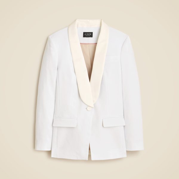 New in J.Crew Collection. Sleek and classic, this new style comes with rounded satin lapels for added polish, and a longer, streamlined length that hits right at the hips. Plus, it’s crafted from an easy linen blend that’s naturally breathable and incredibly soft.