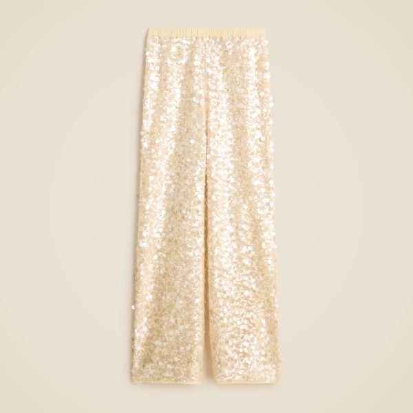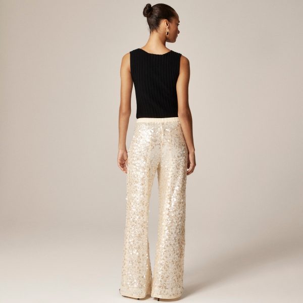 New in J.Crew Collection. This special spin on our Cosmo pant comes with a slim elastic waistband (so you can wear it higher or lower on your waist), a roomy, relaxed fit all the way through and a 29u0026quot; inseam that grazes the floor in flats. Plus, it’s covered in multisized statement sequins for a pretty textured moment that’s perfect for all your party plans.