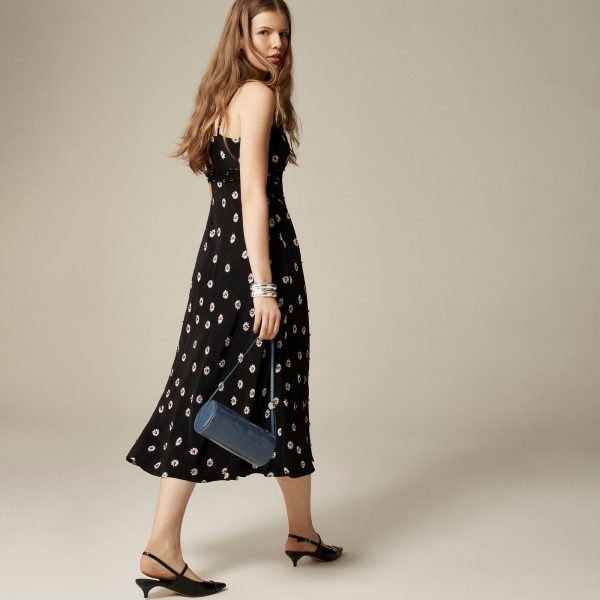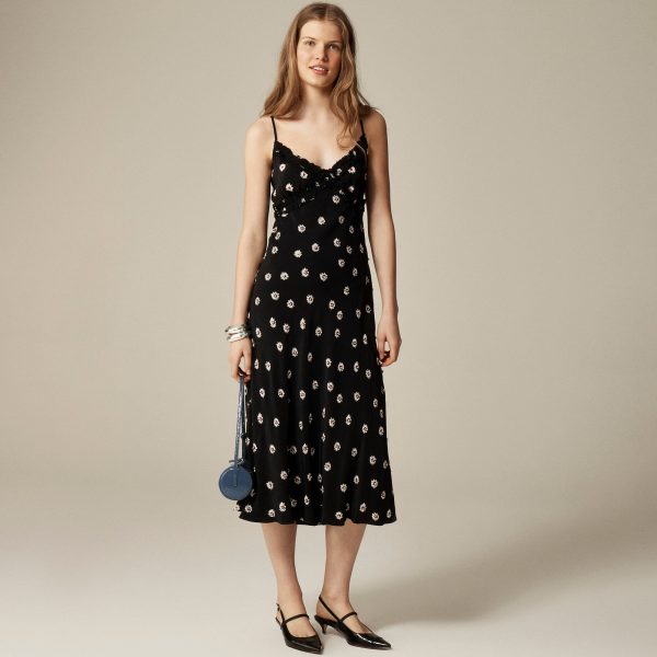 New in J.Crew Collection. For moments that call for sparkle, this sleek slip style comes with sequin and bead embellishments all over, plus playful ruffle-trim details sewn along the top and around the back.