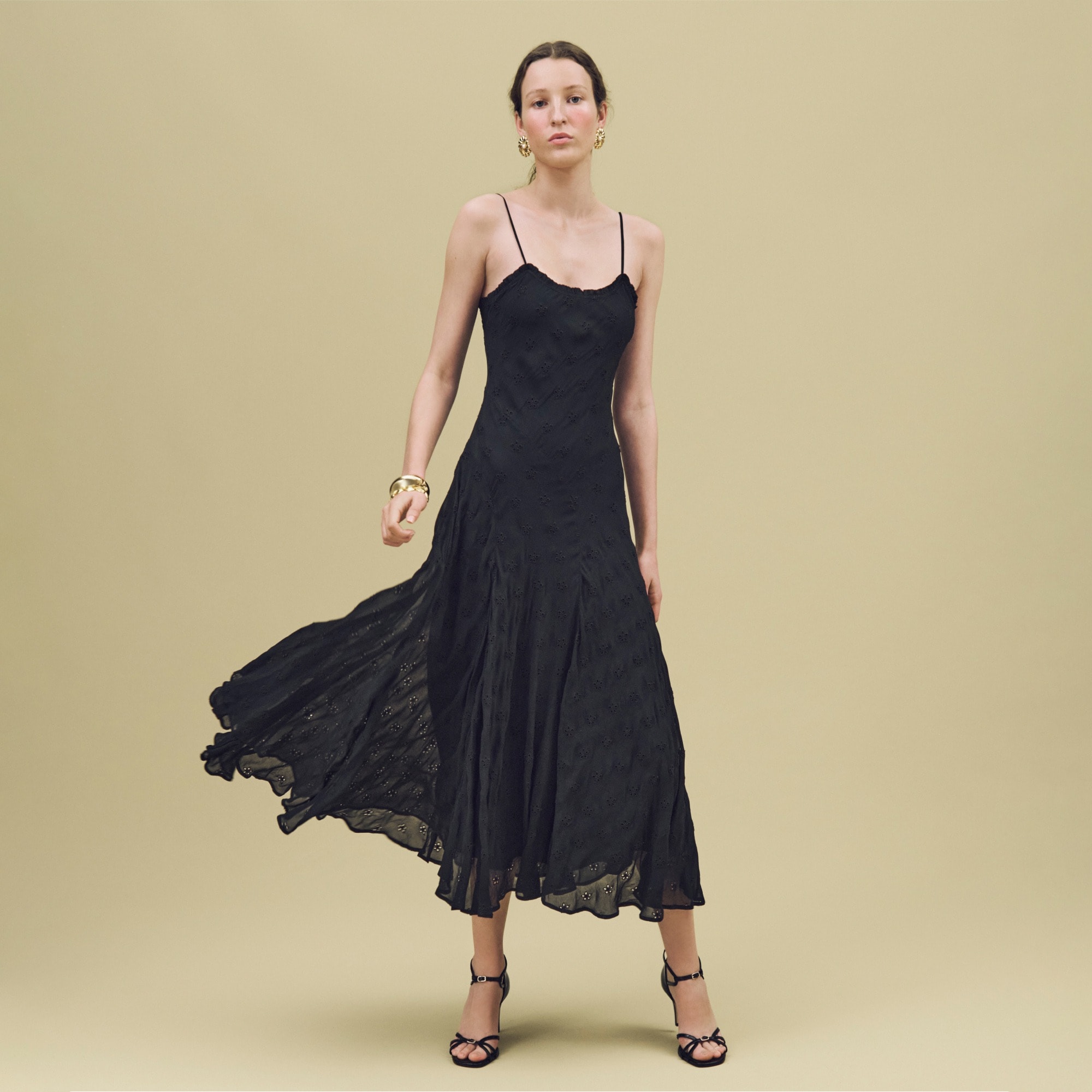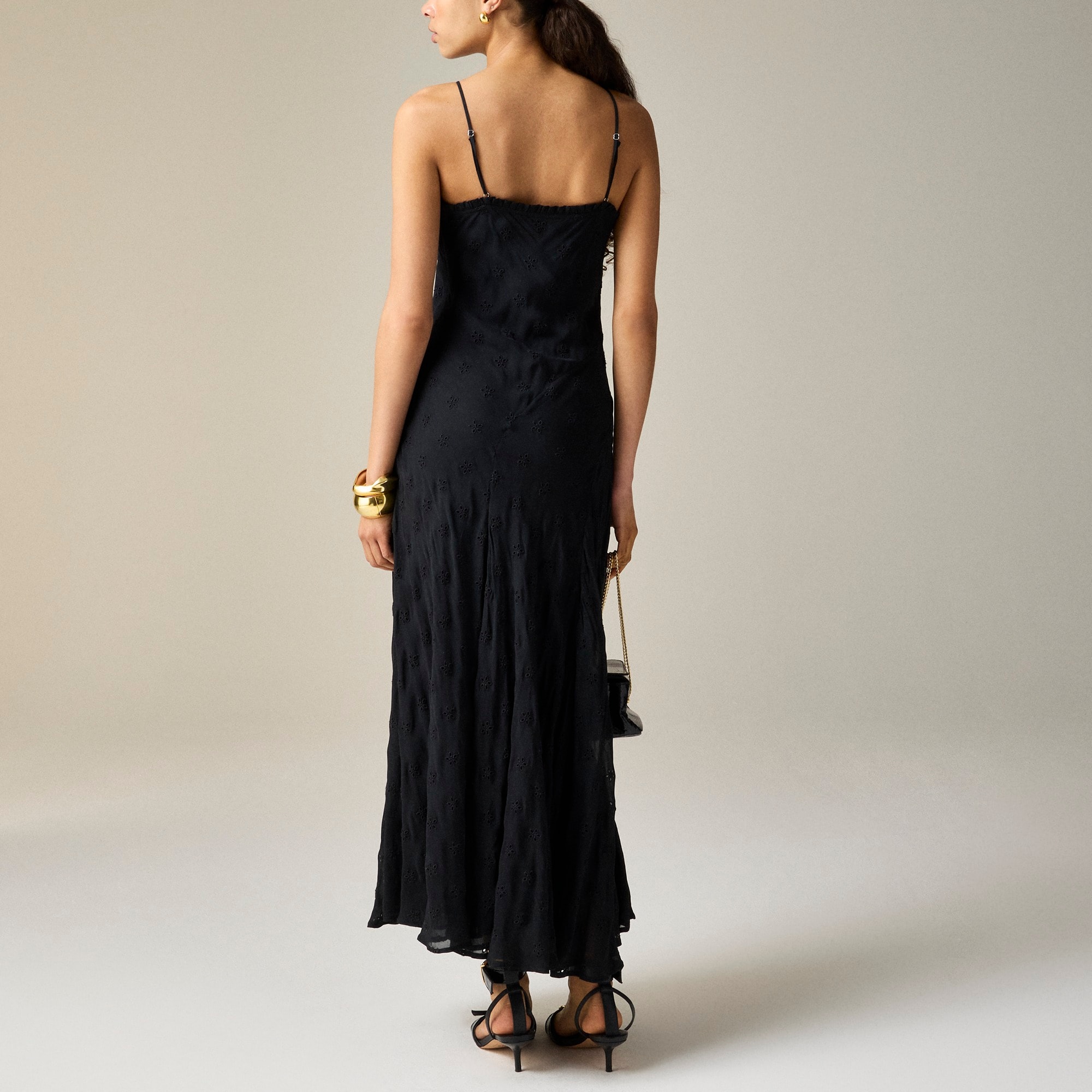 New in J.Crew Collection. For special occasions and beyond. . .Meet one of our newest takes on the classic slip dress, featuring a pretty eyelet that’s been cut on the bias for an ultra-flattering, elongating and perfectly dramatic effect.