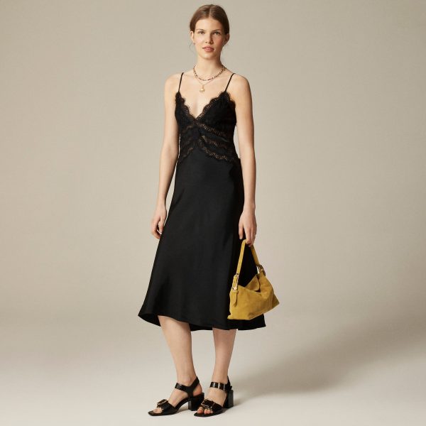 New in J.Crew Collection. Understated-yet-striking, with intricate lace inset details along the neckline and bodice that show a hint of skin.