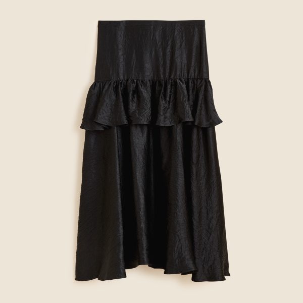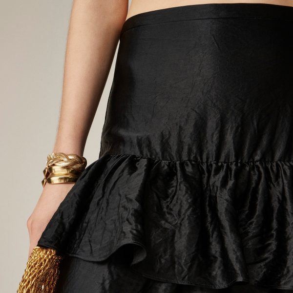 New in J.Crew Collection. This statement skirt is cut in a glossy, crinkled fabric that catches the light and crafted with a single, sweeping ruffle tier that hits just below the hip for extra movement. Pair it with the matching top for the perfect party-ready set.
