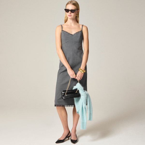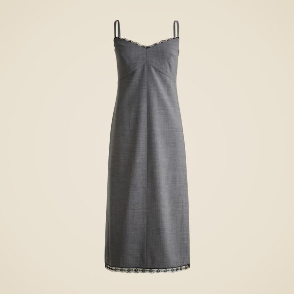 New in J.Crew Collection. A sophisticated piece with endless styling potential. This ’90s-inspired slip dress comes with lace trim along the neckline and hem, plus sleek seam details under the bust and down the front. Not to mention it’s crafted in a smooth wool blend with a touch of stretch from Tollegno 1900 (est. 1862), one of the oldest mills in Italy.