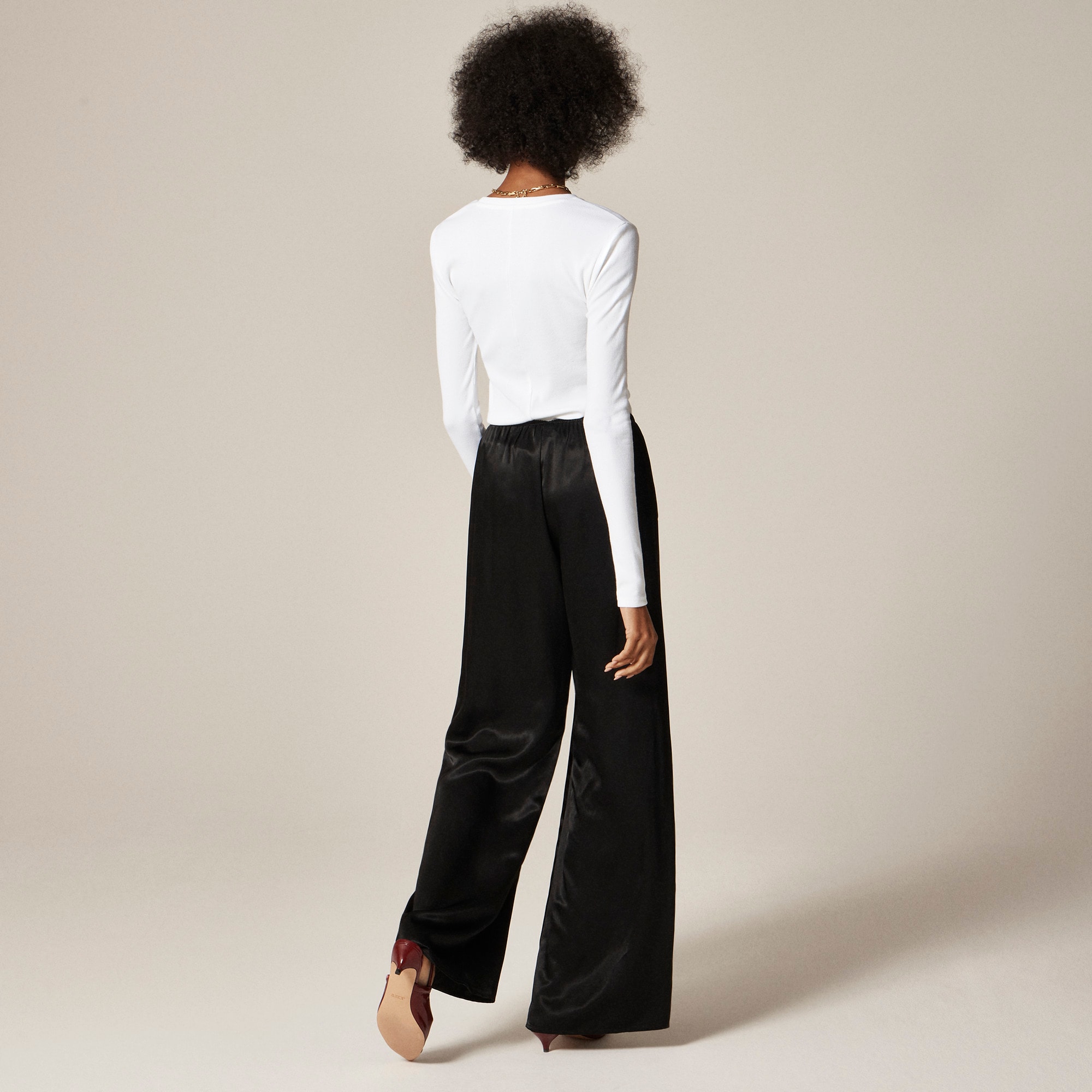 Easy does it. This effortless style comes with a slim elastic waistband (so you can wear it higher or lower on your waist), a roomy, relaxed fit all the way through and a 29u0026quot; inseam that falls just below the ankle. Plus, it’s crafted from our smooth luster charmeuse that reflects the light and dresses up everything you pair with it.