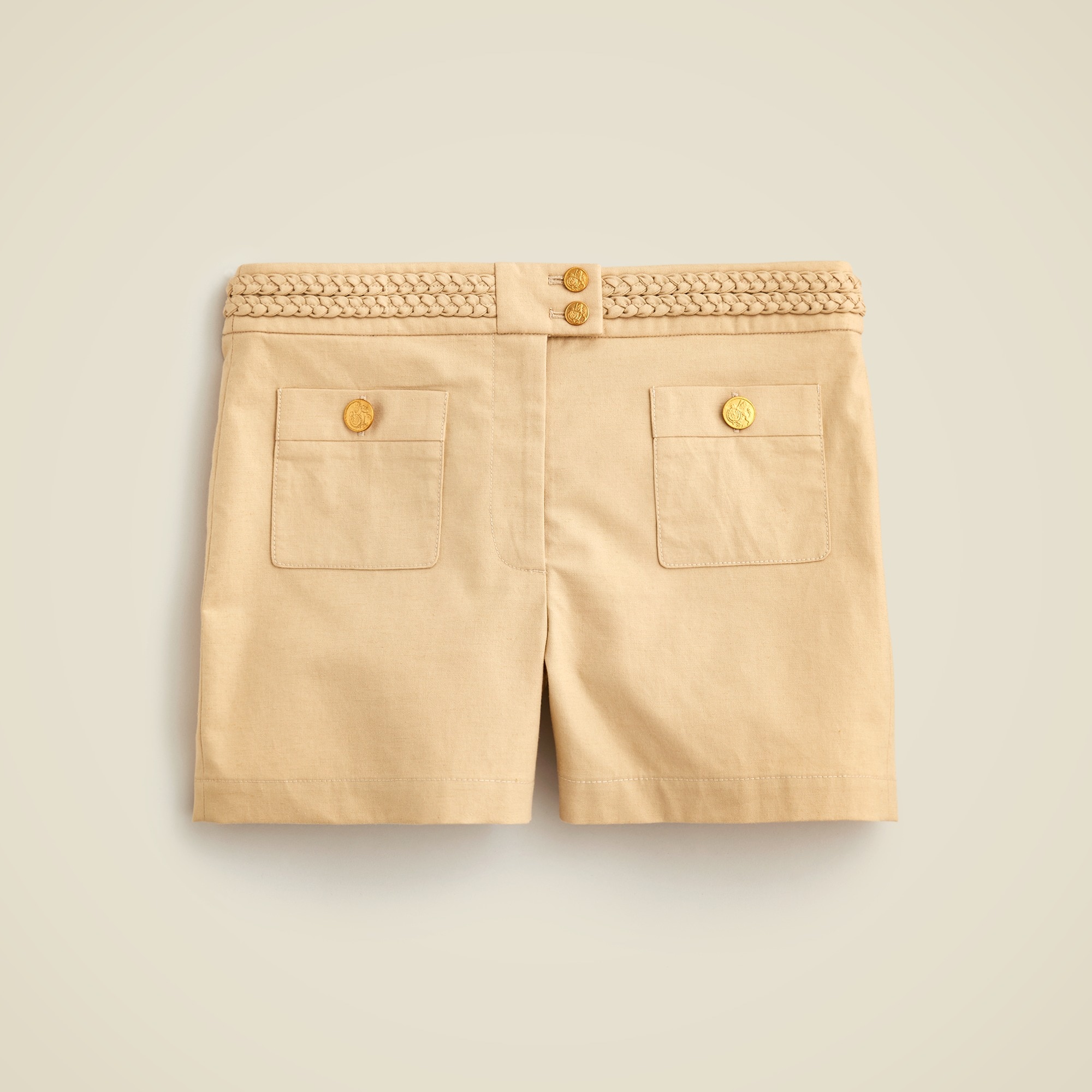 A breezy mini short with extra-special details. Crafted from a naturally breathable blend of cotton with a touch of linen, it comes with polished gold coin buttons and braided trim along the waist.