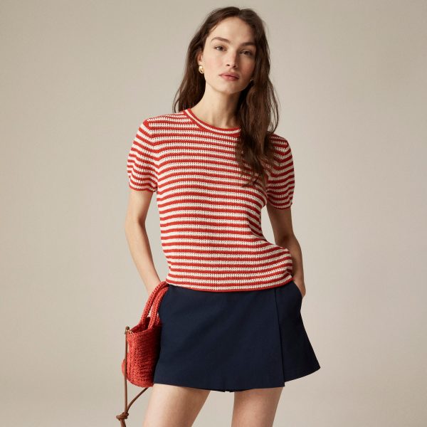 Your classic striped tee with a textural twist. This short sleeve is crafted from a breezy blend of cotton with a structured waffle-like stitch throughout and an effortlessly cool, rolled hem. Plus, it pairs back to our kids’ collection, so you can make it a matching moment.