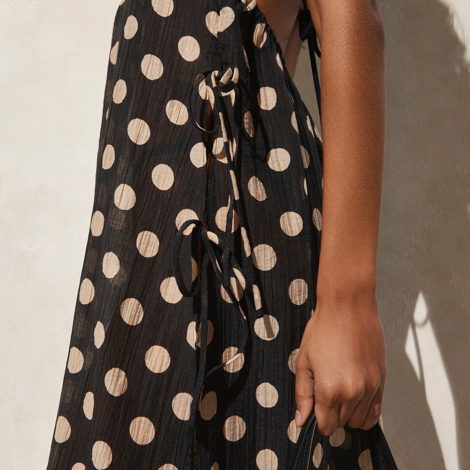 Breezy and easy, aka the ideal beach layer. It comes with tie details down the sides, a retro halter-neck and a sweet dot print. Plus, it’s crafted from subtly sheer, pre-crinkled fabric that makes it perfect for packing. Just add sunshine.
