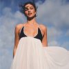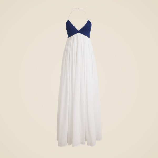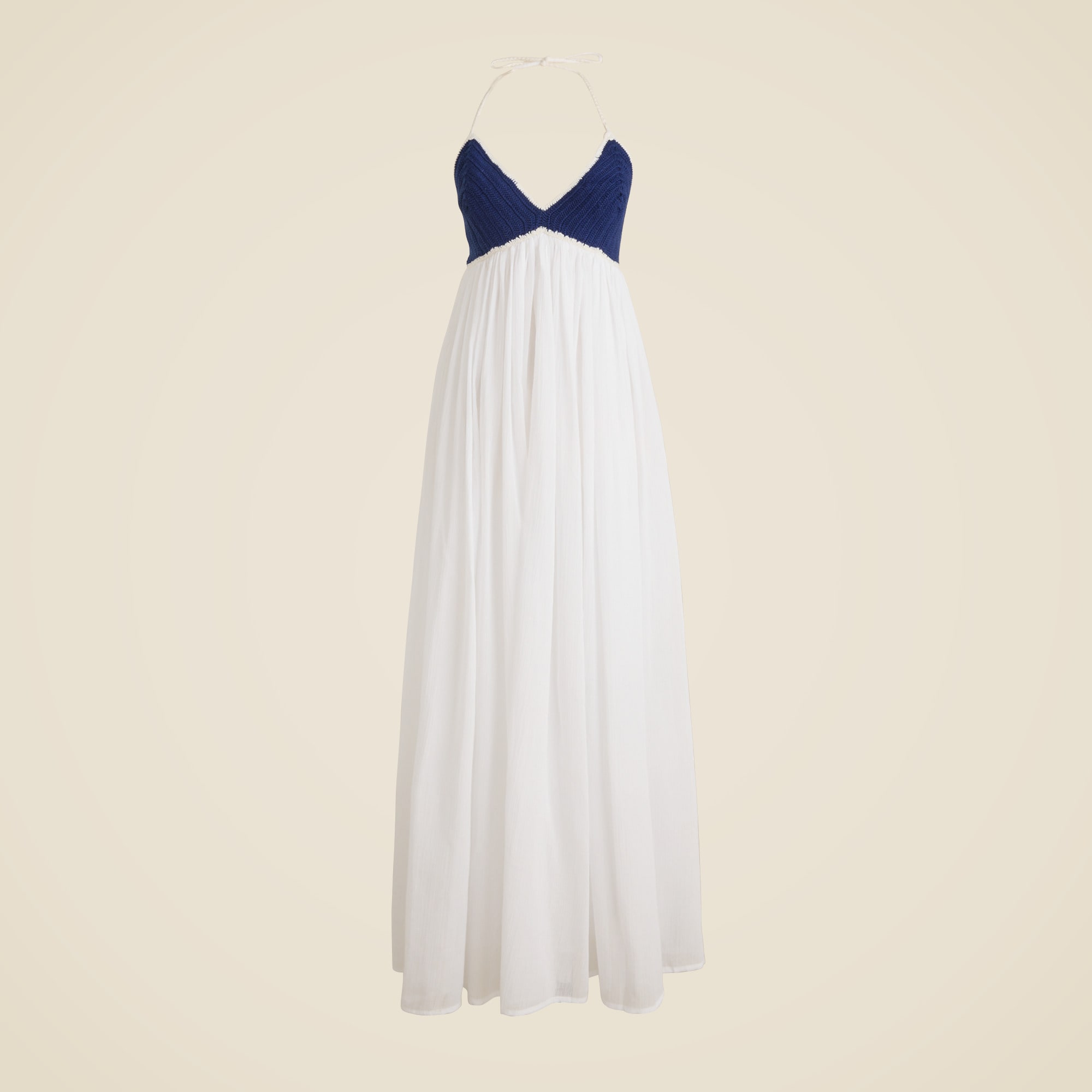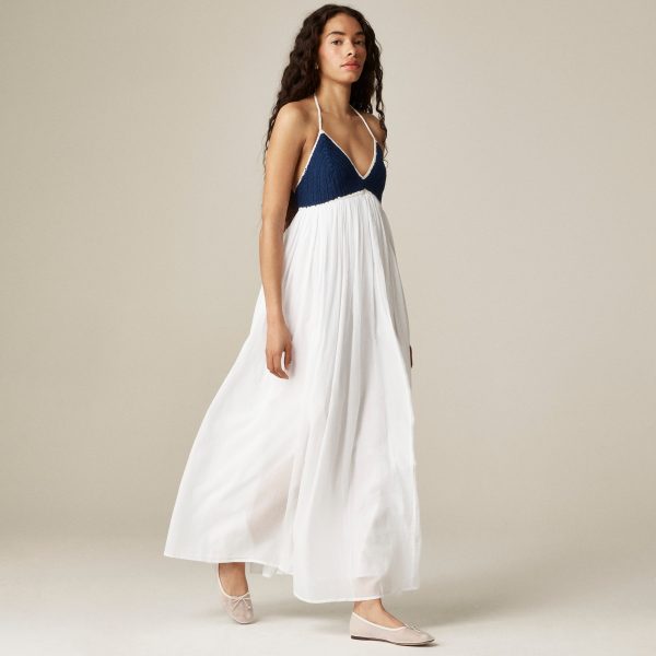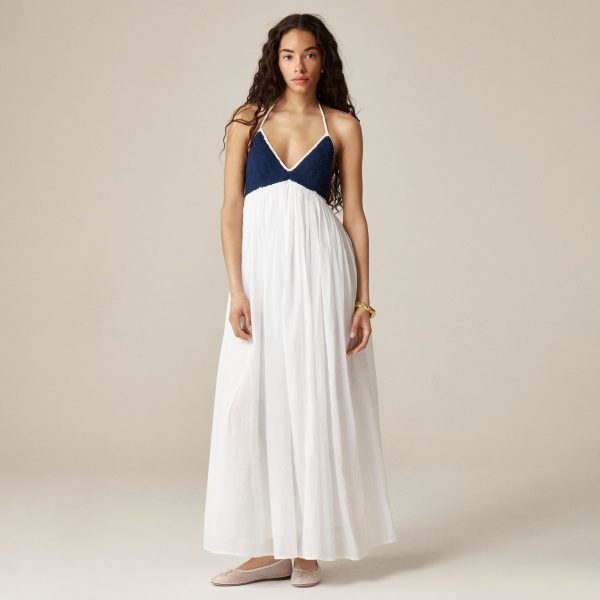 A striking mix of textures for summer days. Crafted from contrasting crochet on top and breezy crinkle cotton on the bottom, it transitions seamlessly from the beach to dinner and beyond.