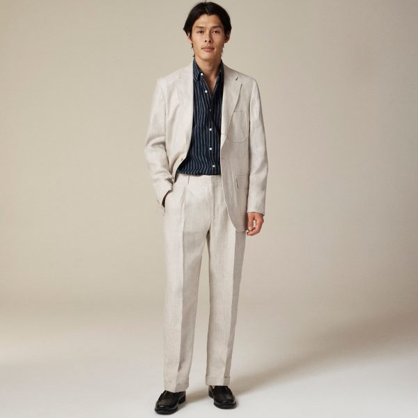 Welcome to the J.Crew Suit Shop, home of our three signature fits: Ludlow (a modern slim fit), Crosby (a traditional classic fit) and Kenmare (a relaxed-but-polished fit). We craft our suits in premium fabrics from some of the world’s best mills using time-honored tailoring techniques. Linen comes from the flax plant and is naturally breathable and strong, making it ideal for warm-weather suits.