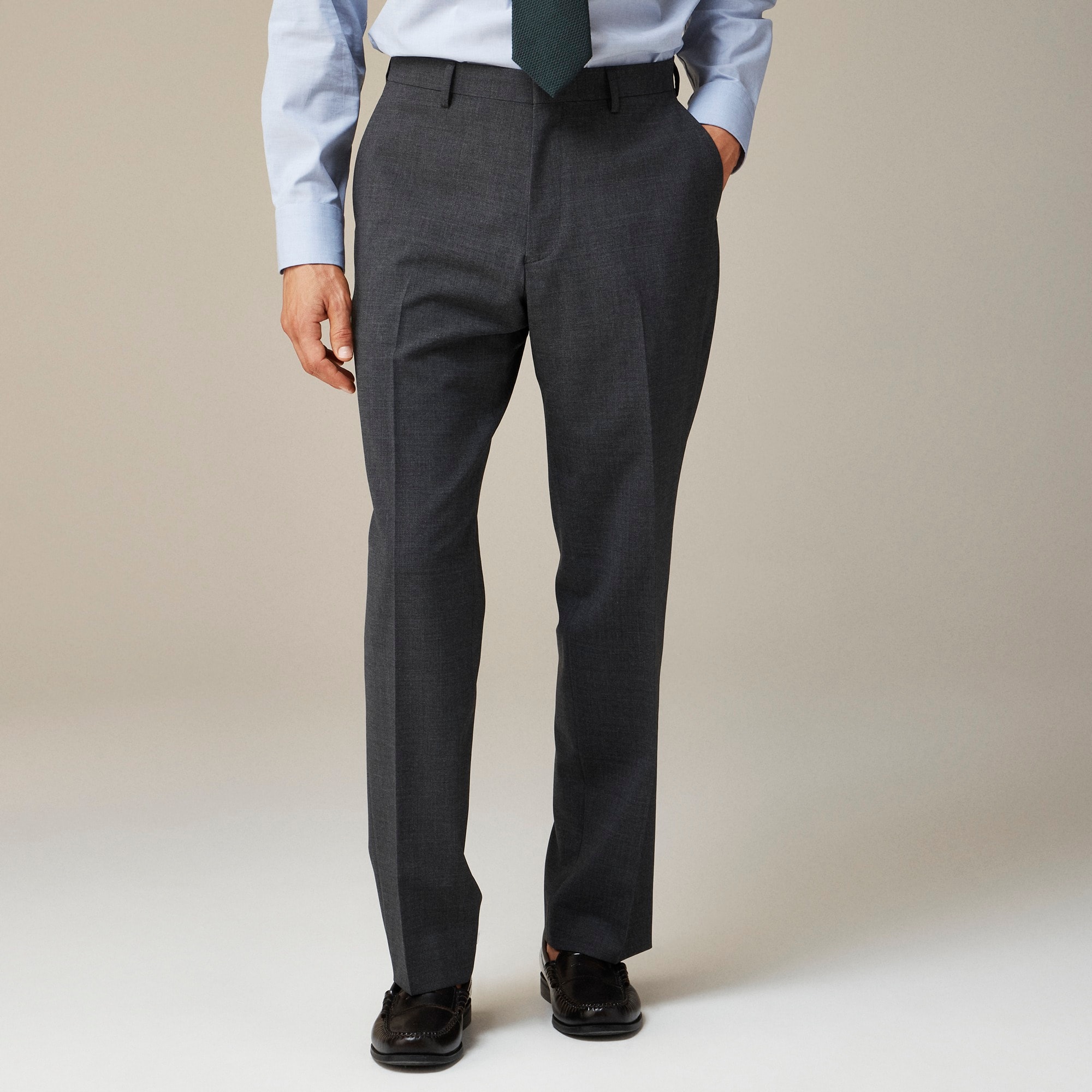 Welcome to the J.Crew Suit Shop, home of our three signature fits: Ludlow (a modern slim fit), Crosby (a traditional classic fit) and Kenmare (a relaxed-but-polished fit). Our customer-favorite Traveler suit is back by popular demand, and will keep you put-together everywhere from the airport to the office and beyond. We craft it in wrinkle-resistant stretch wool woven by Tollegno 1900 (est. 1862), one of the last remaining mills in Italy to still spin its own yarns. These suit pants are refined, comfortable and easy to wear on their own or with the accompanying jacket. Whether you commute, travel wearing the Traveler suit or pack it in your suitcase, you’ll arrive at your destination ready for every dress code.