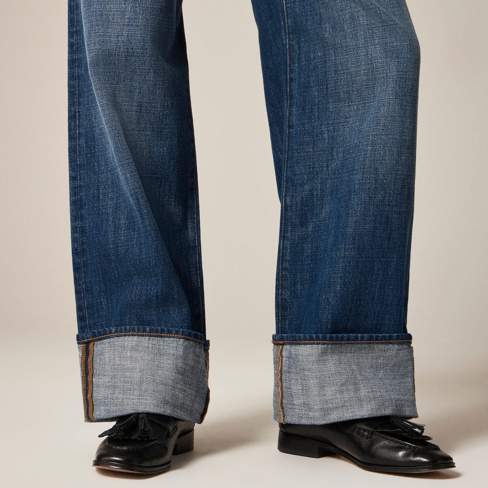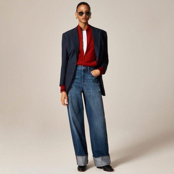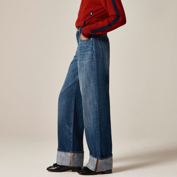 Denim with a laid-back attitude. . .This jean is cut a bit looser, so it sits lower on the hips for a slouchy right-now rise. It also has a wide, relaxed leg with a cool cuff detail for all the casual drama and a 31u0026quot; inseam that grazes the floor in flats and looks even more elevated with your favorite heels.