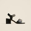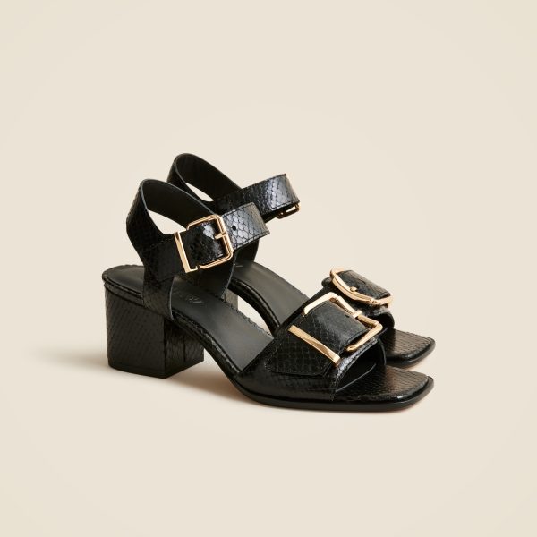 Dylan Buckle Block-heel Sandals In Snake-embossed Leather For Women