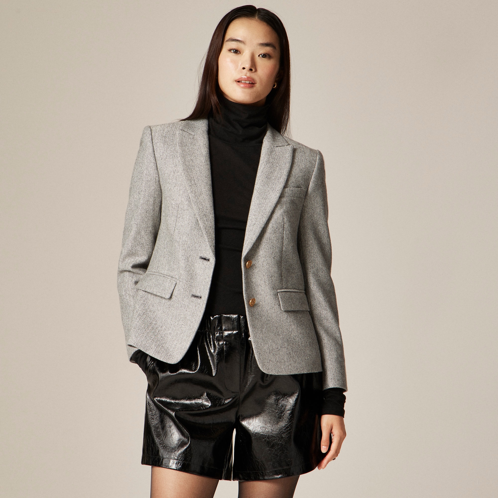 A fresh take on refined. This structured blazer comes with sharp lapels and a slightly shorter length that hits at the hipsu0026mdash;giving it that academia-inspired feel that’s polished but never too buttoned-up. Plus, it’s crafted in a subtly textured blend of wool that’s ideal for that smooth transition into fall.