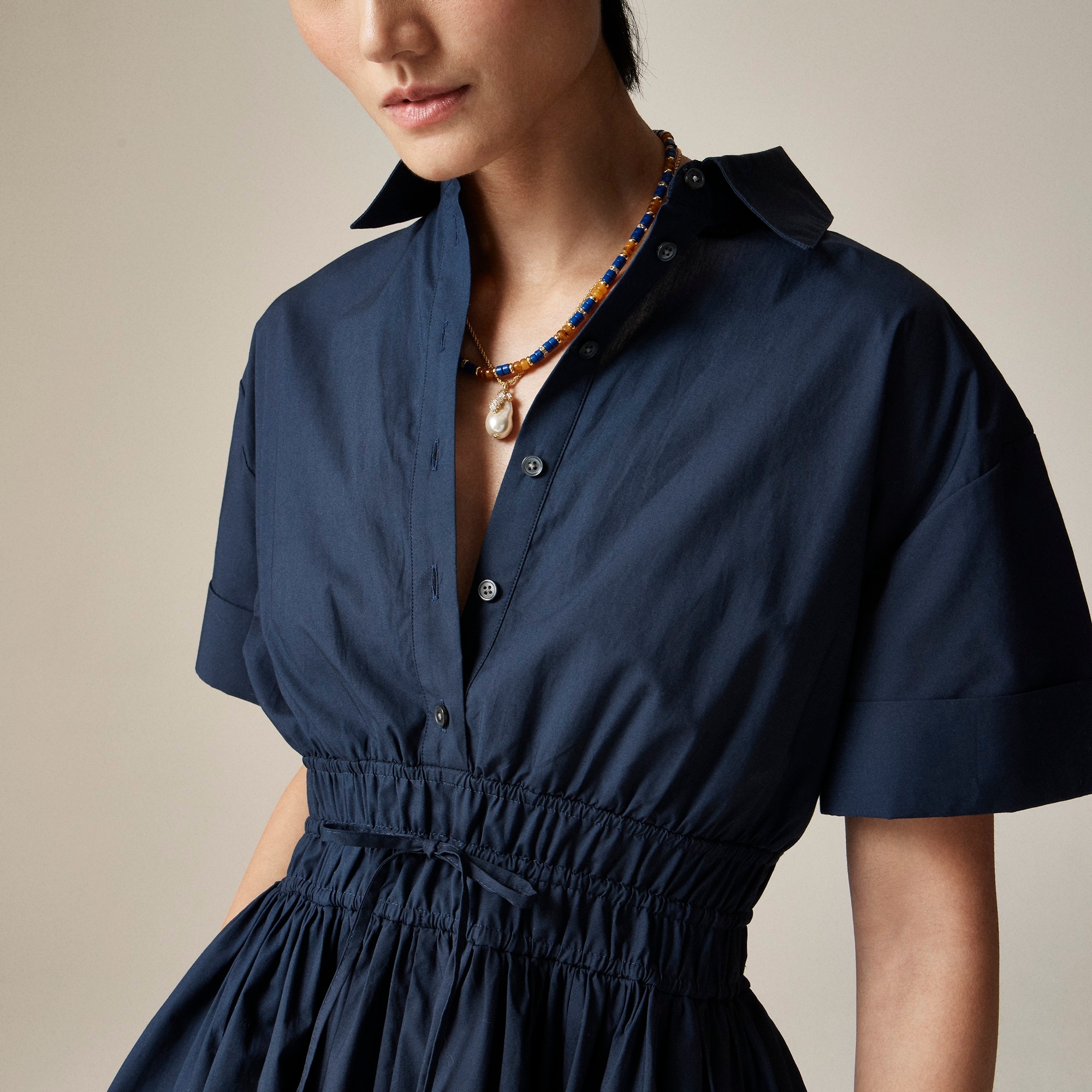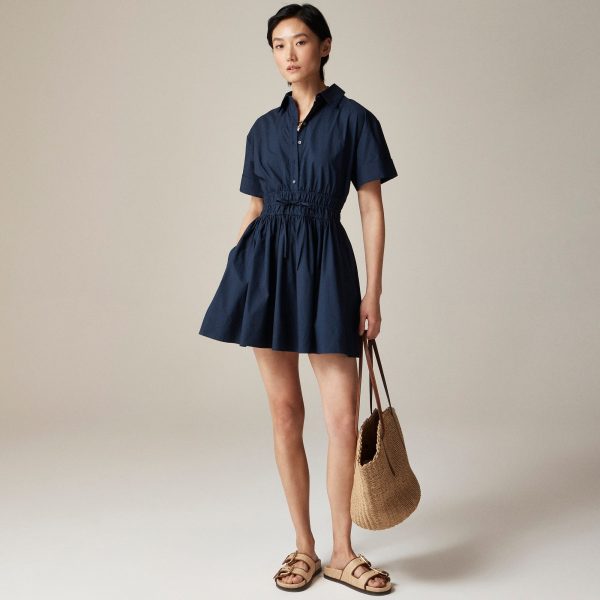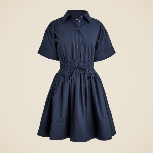 An everyday dress with some added drama. This new mini take on the versatile shirt-dress silhouette comes with a smocked elastic waist that can be tightened with a tie detail, plus buttons halfway up the front. All the cotton we use for this dress is fully traceable to farms that are certified to the standards of regenagriu0026reg;, an agricultural program devoted to encouraging biodiversity, reducing greenhouse-gas emissions and securing the health of the land and the people who live and work there.