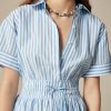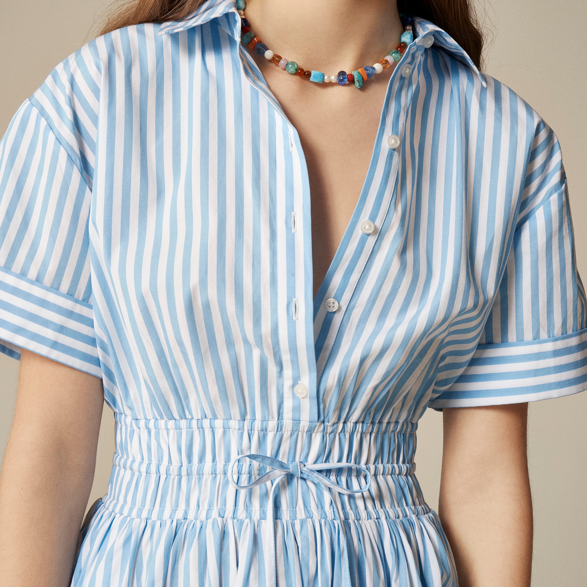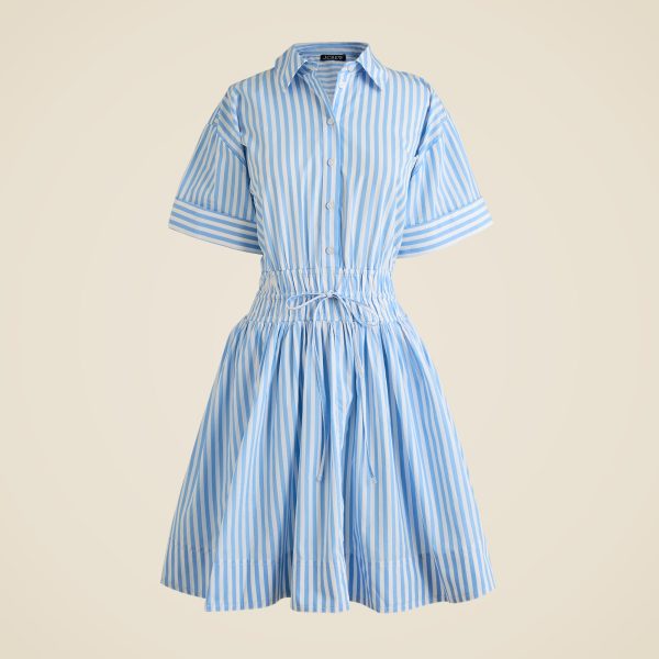 An everyday dress with some added drama. This new mini take on the versatile shirt-dress silhouette comes with a smocked elastic waist that can be tightened with a tie detail, plus buttons halfway up the front. All the cotton we use for this dress is fully traceable to farms that are certified to the standards of regenagriu0026reg;, an agricultural program devoted to encouraging biodiversity, reducing greenhouse-gas emissions and securing the health of the land and the people who live and work there.
